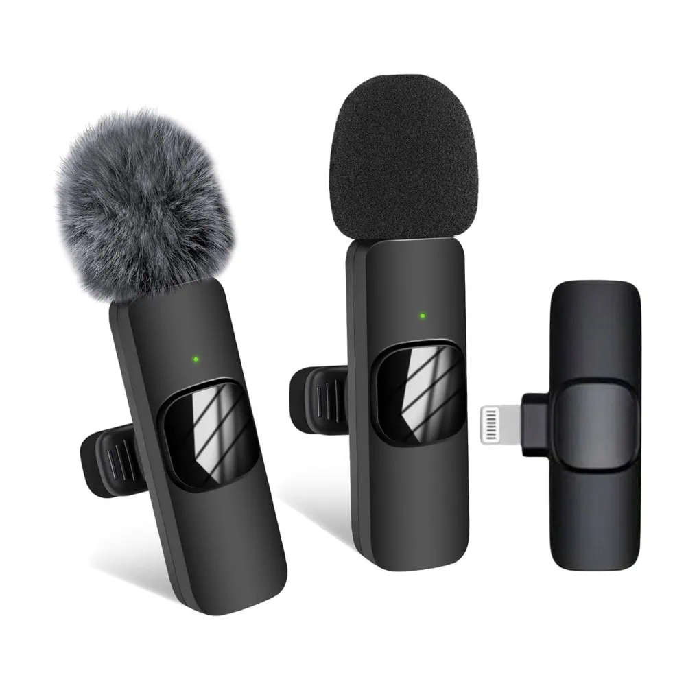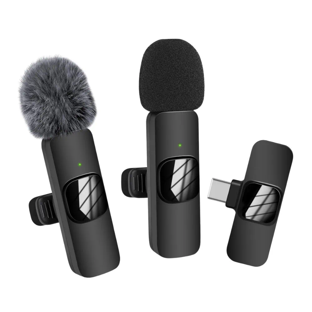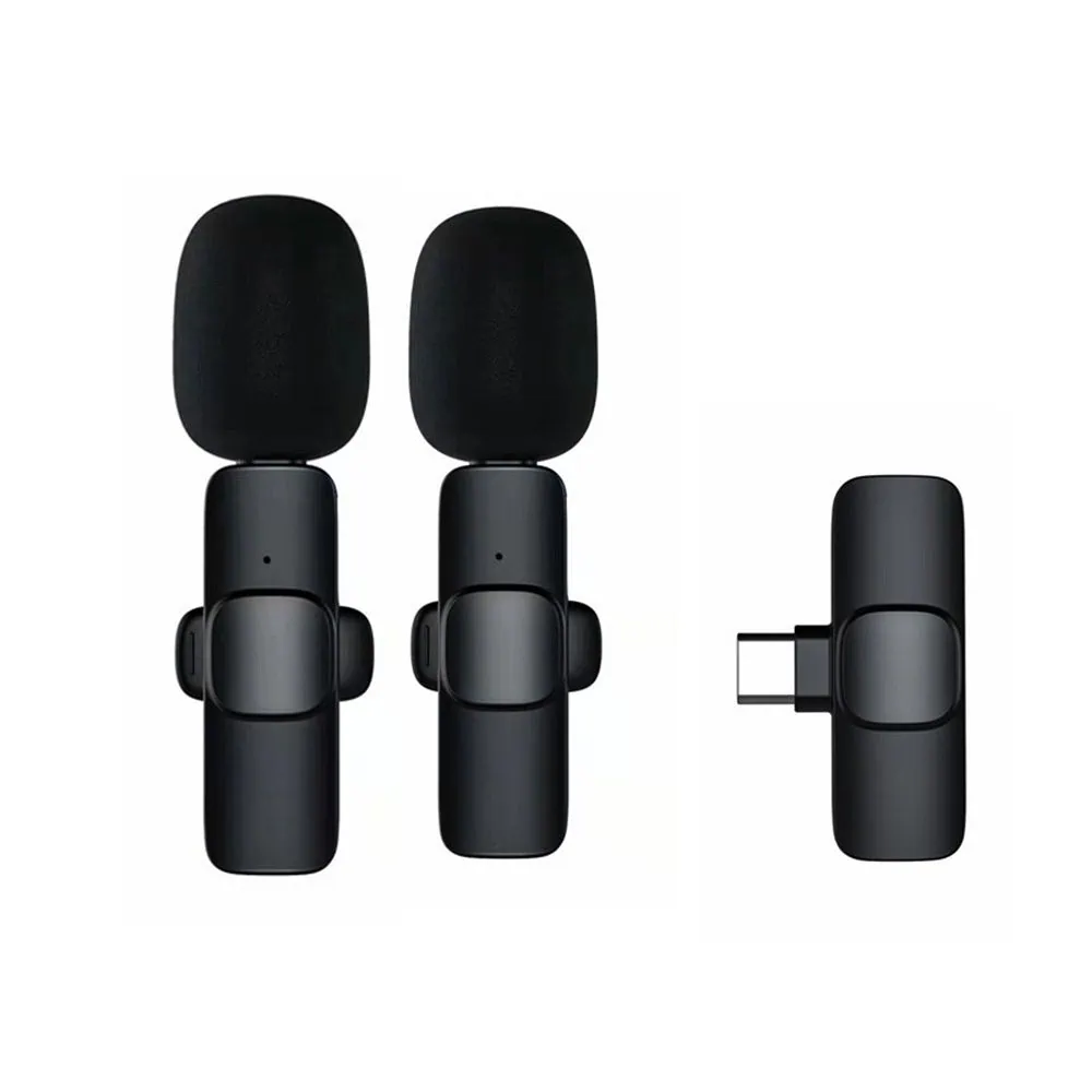 Bezprzewodowy mikrofon krawatowy z wejściem USB typ C dla iPhone z serii 15/16, 2 w zestawie, czarny