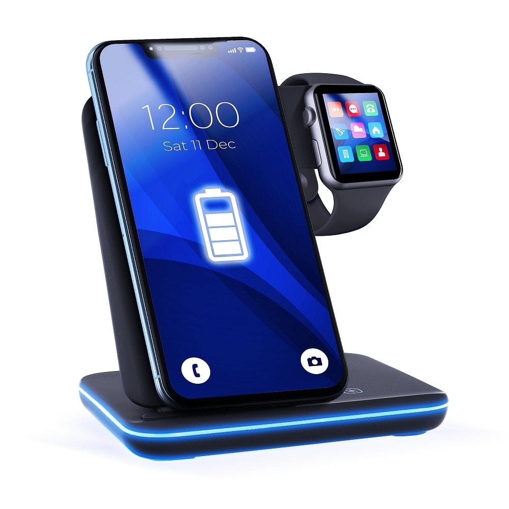 Innowacyjna ładowarka bezprzewodowa o nowoczesnym wyglądzie. Dostępna w dwóch wersjach kolorystycznych – czarnej oraz białej. Cechuje się szybkim ładowaniem – 15W. Za pośrednictwem tej ładowarki można ładować również smartfon i słuchawki. Co ważne, ładowanie telefonu może odbywać się zarówno w pozycji wertykalnej, jak i horyzontalnej, co umożliwia komfortowe korzystanie z urządzenia w czasie ładowania. Wykonana z wysokiej klasy materiału odpornego na zarysowania i uszkodzenia. Praktyczne podświetlenie nadaje urządzeniu ciekawego wyglądu.