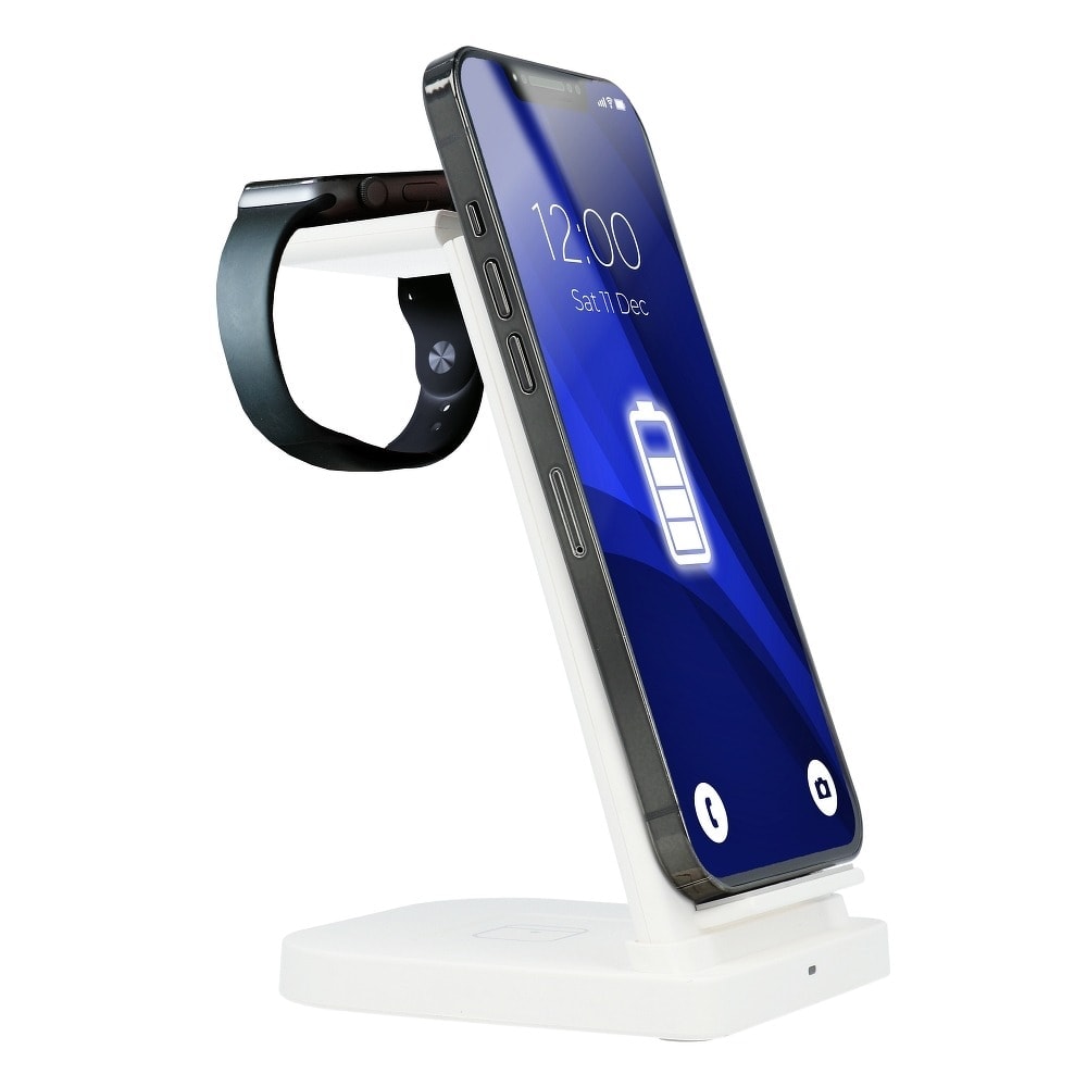 Ultralekka ładowarka bezprzewodowa o wadze zaledwie 131 gram. Biały klasyczny kolor oraz przyjemna dla oka forma sprawiają, że ładowarka staje się elementem wystroju wnętrza. Za pośrednictwem tej ładowarki można jednocześnie naładować smartfona i zegarek, czy słuchawki od Apple. Splątane kable odchodzą w niepamięć.