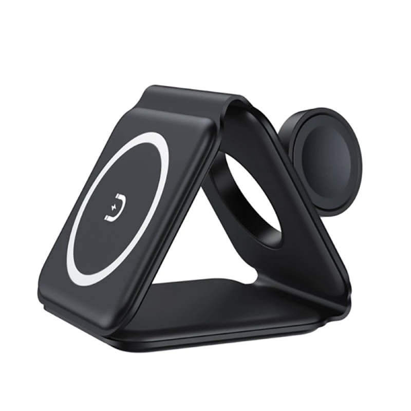 Wielofunkcyjna ładowarka, która łączy w sobie zalety ładowania indukcyjnego oraz tradycyjnego. Dzięki wygodnej konstrukcji jednocześnie naładujesz tablet lub smartfon oraz zegarek.