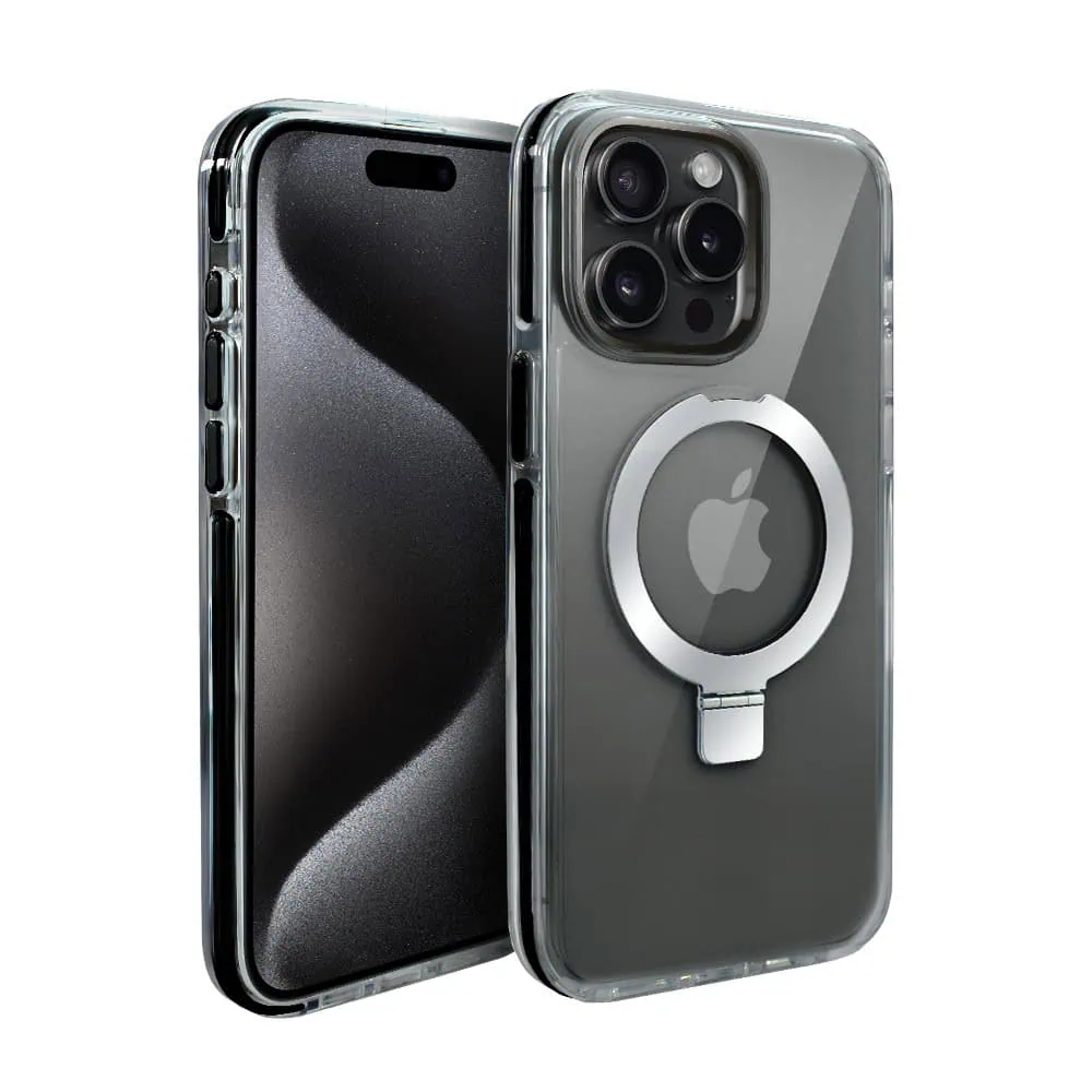 Etui do iPhone 15 Pro Max Clear Steel MagSafe, z podstawką, przeźroczysty tył, czarna ramka