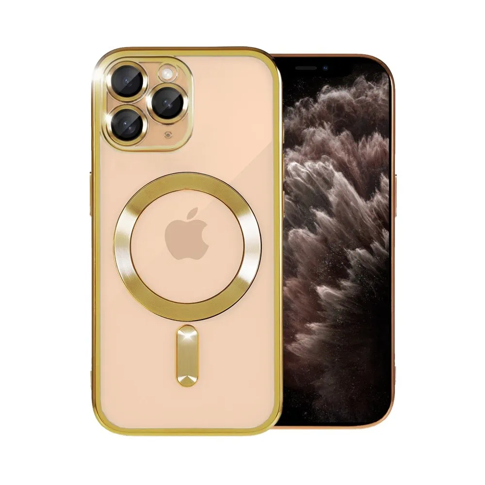 Etui do iPhone 11 Pro Max MagSafe Luxury Protect przeźroczyste, hybrydowa ochrona kamery, złote