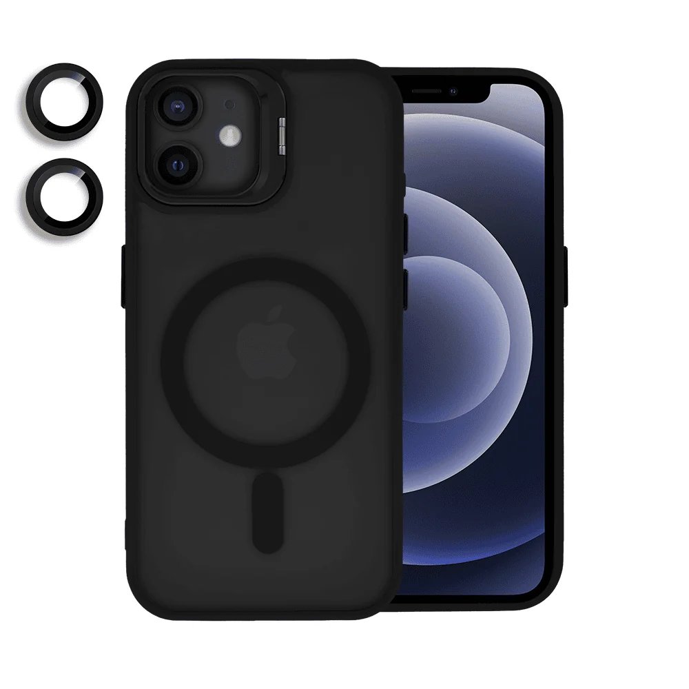 Etui do iPhone 12 Arctic Stand, półprzeźroczyste, z osłoną aparatu i podstawką, czarne