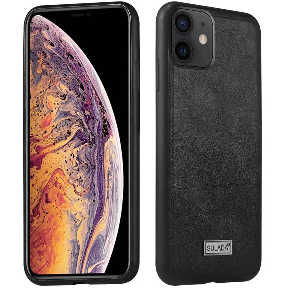 Etui do iPhone 12 eleganckie luksusowe skórzane Velvet Black SULADA oryginal, czarne