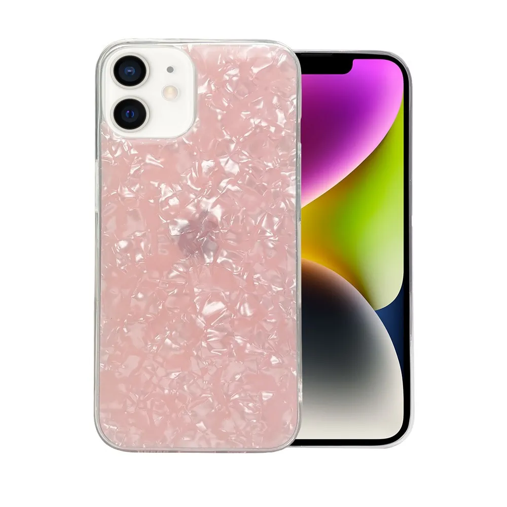 Etui do iPhone 12 eleganckie cienkie ze zdobieniami i widocznym logo, różowe złoto