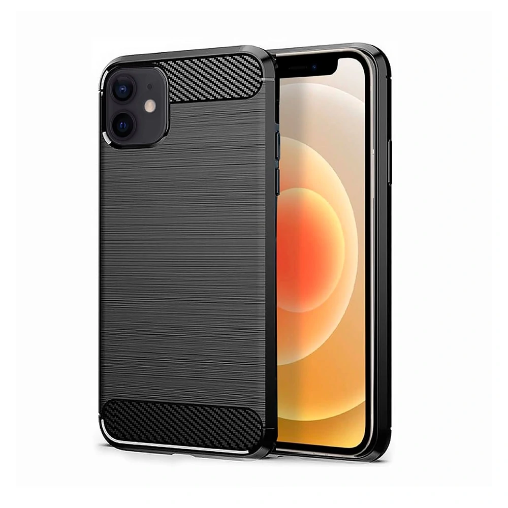 Etui do iPhone 12 eleganckie cienkie ze zdobieniami i widocznym logo, czarne