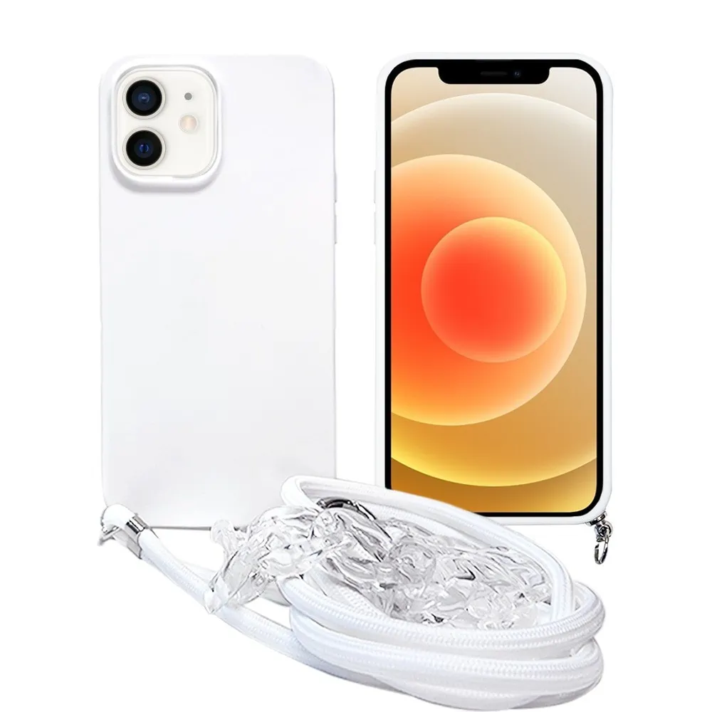 Etui do iPhone 12 Crossbody na ramie jak torebka, z łańcuszkiem i sznurkiem, alabastrowe białe