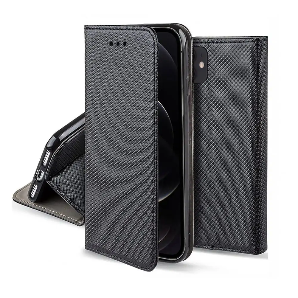 Etui do iPhone 12 książkowe na magnes z trwałego niebrudzącego się materiału, czarne