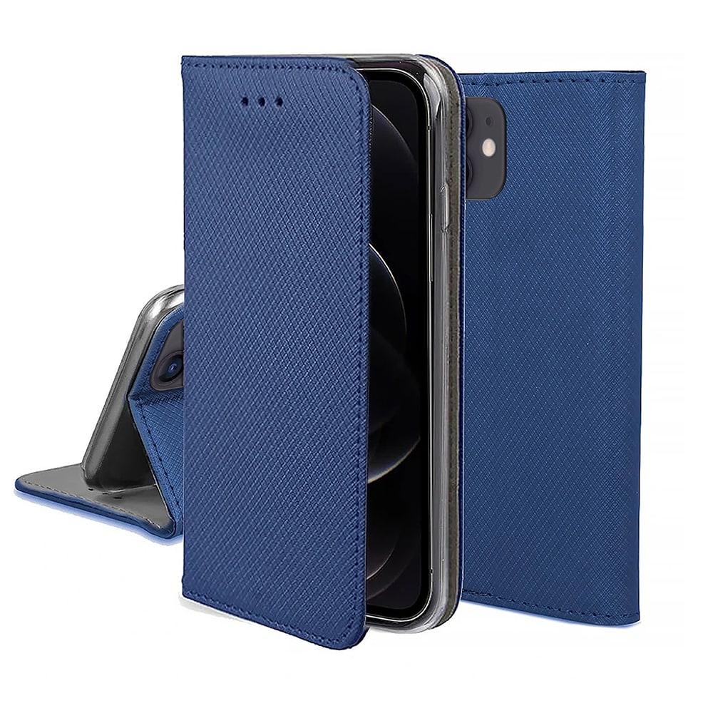 Etui do iPhone 12 książkowe na magnes z trwałego niebrudzącego się materiału, granatowe
