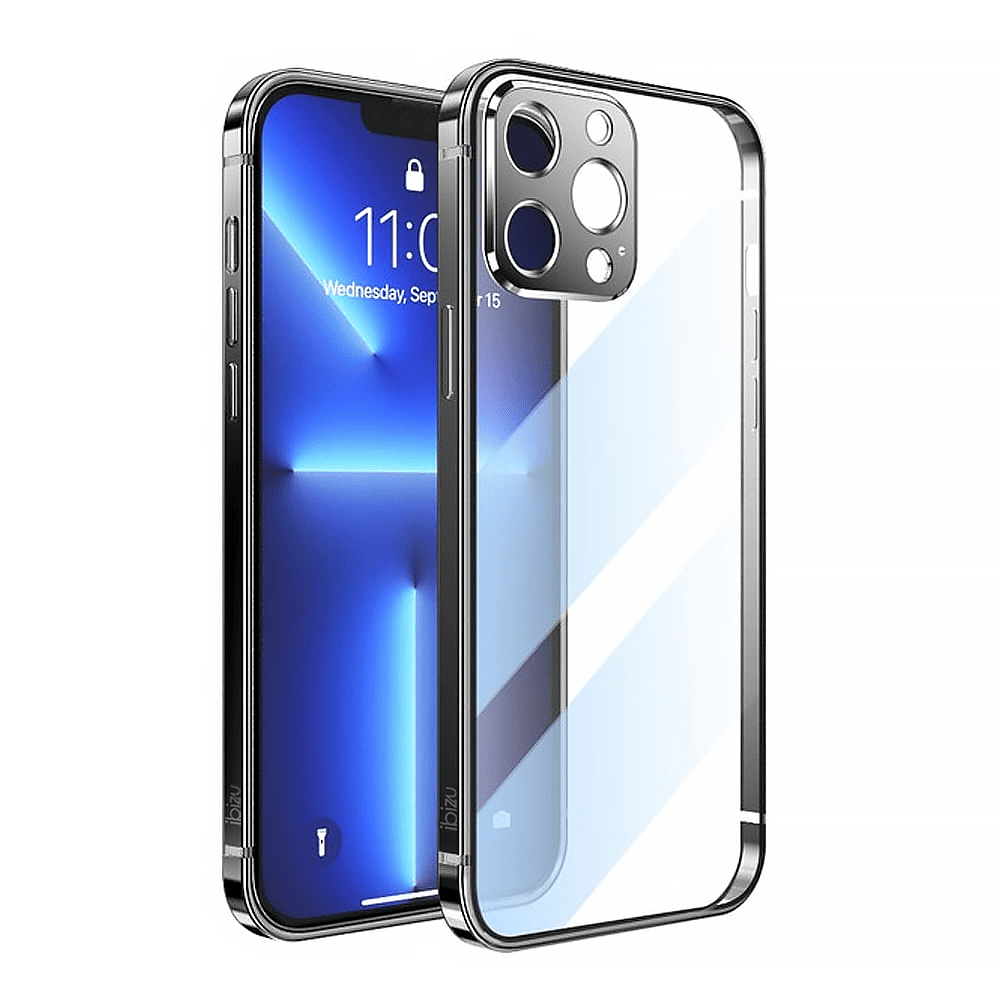 Etui do iPhone 13 Pro Max Ibizu Elite Skin, krystalicznie czyste z metalową ramką, czarne