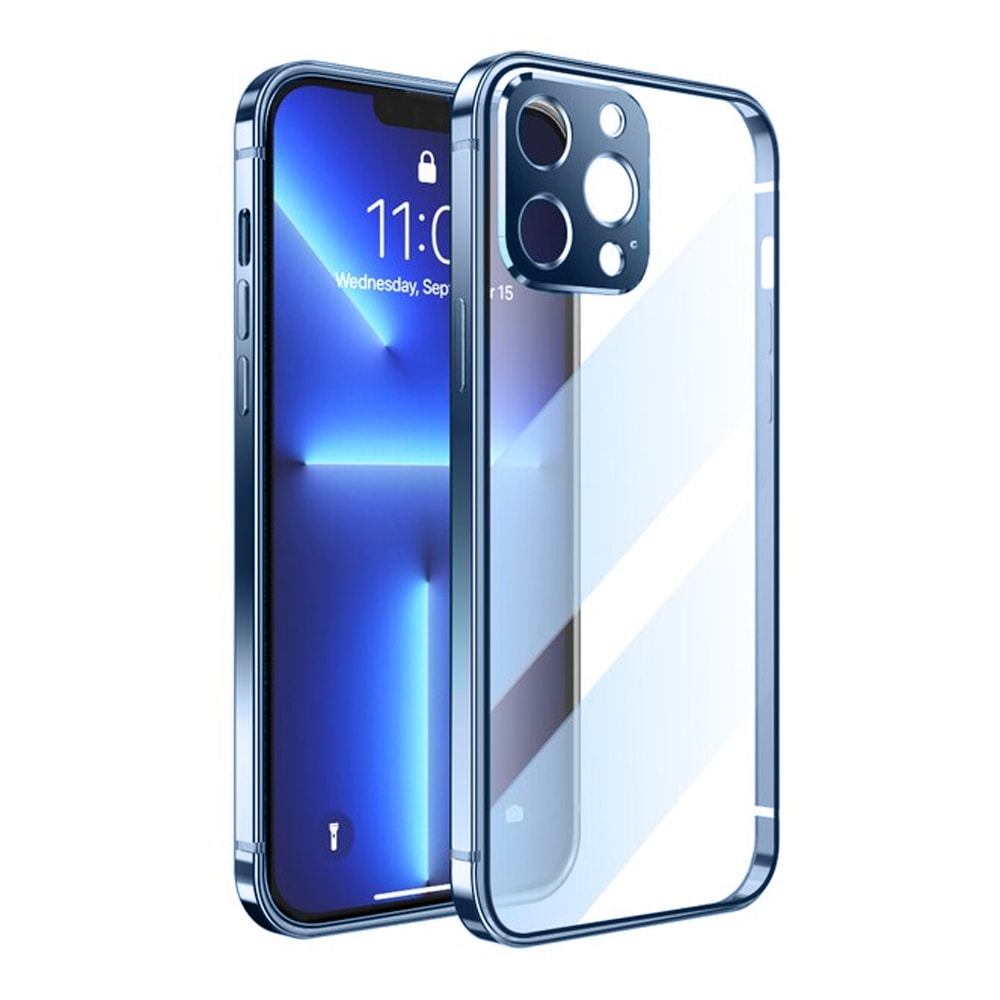 Etui do iPhone 13 Pro Max Hybrid Shadow Protect, szklany tył, ochrona obiektywów, przeźroczyste niebieskie