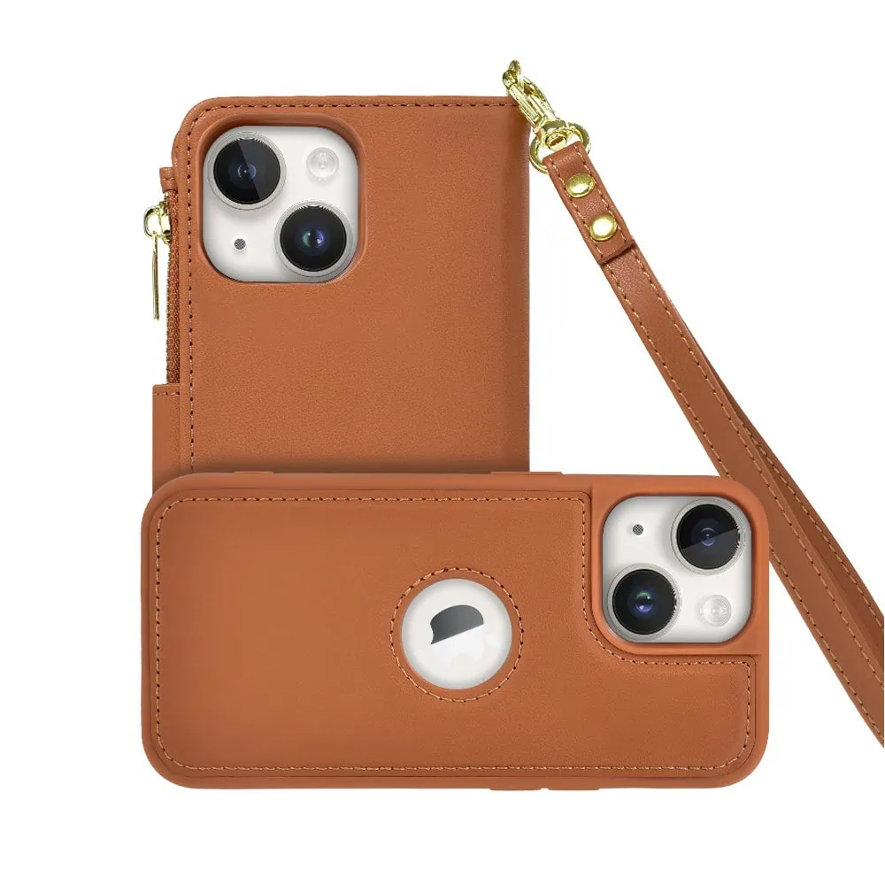Etui do iPhone 14 2w1 Magsafe Double Wallet, zestaw etui oraz kabura ze smyczą, brązowe