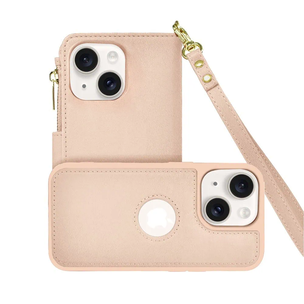 Etui do iPhone 14 2w1 Magsafe Double Wallet, zestaw etui oraz kabura ze smyczą, różowe