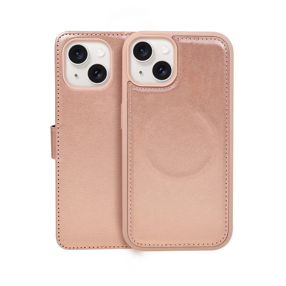 Etui do iPhone 14 3w1 Magsafe Double Book, zestaw etui oraz kabura z podstawką, różowe złoto