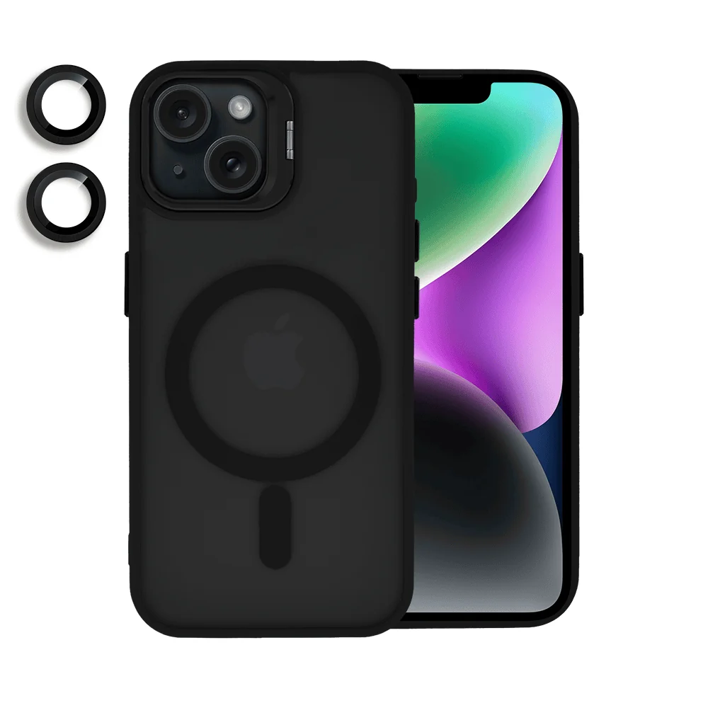 Etui do iPhone 14 Cam Stand MagSafe z podstawką, twarde, matowe półprzeźroczyste, czarne