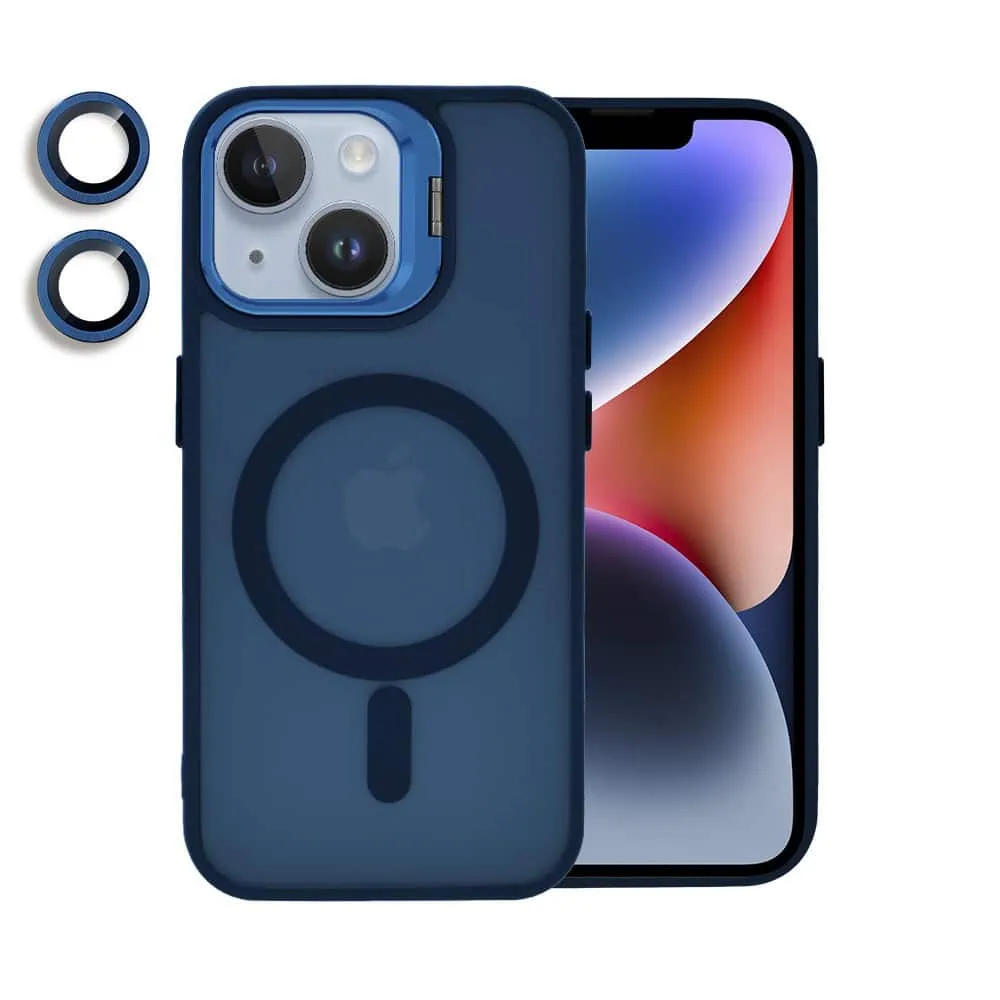 Etui do iPhone 14 Arctic Stand, półprzeźroczyste, z osłoną aparatu i podstawką, głęboki niebieski