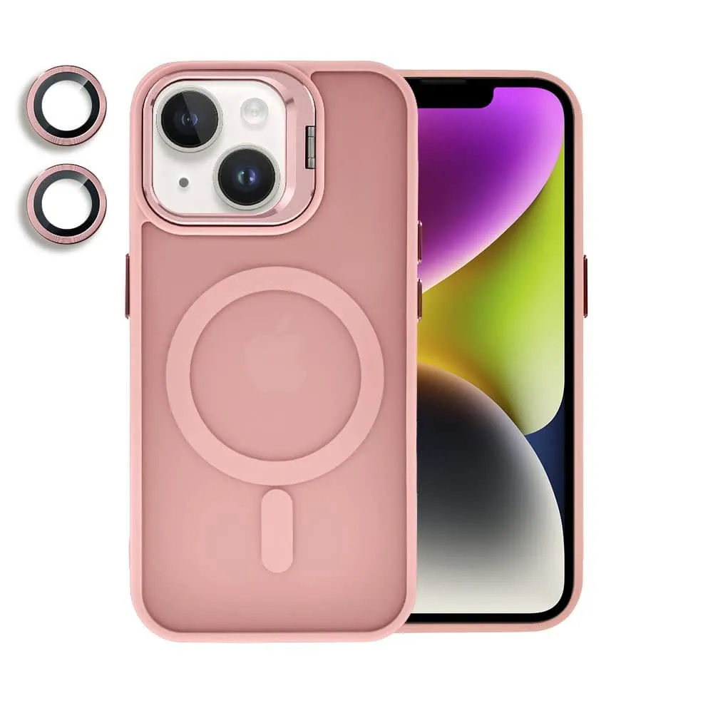 Etui do iPhone 14 Arctic Stand, półprzeźroczyste, z osłoną aparatu i podstawką, różowe