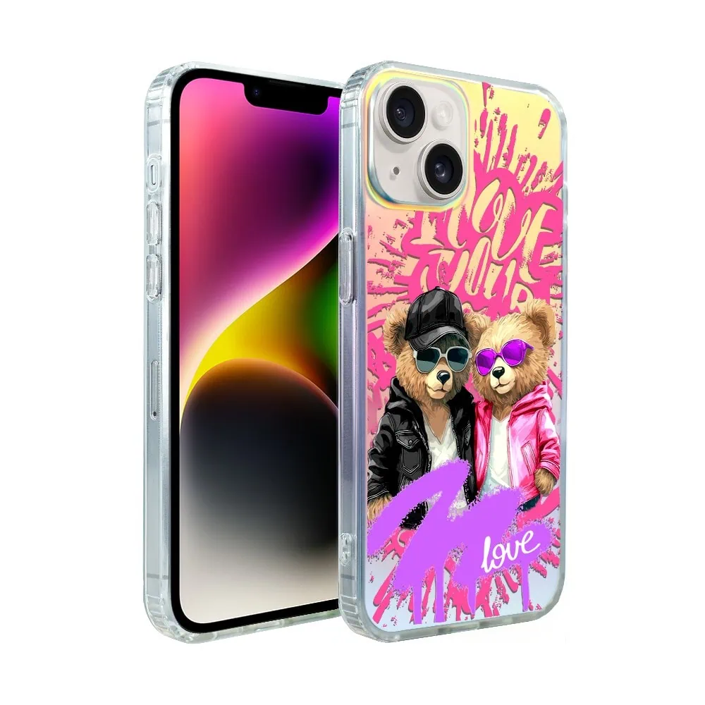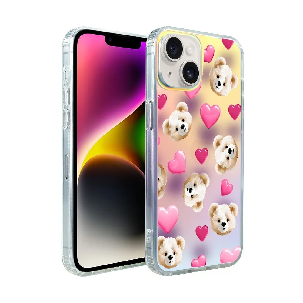 Etui do iPhone 14 Bear With Me, Love Mood, miś i serduszka, zmieniające kolor