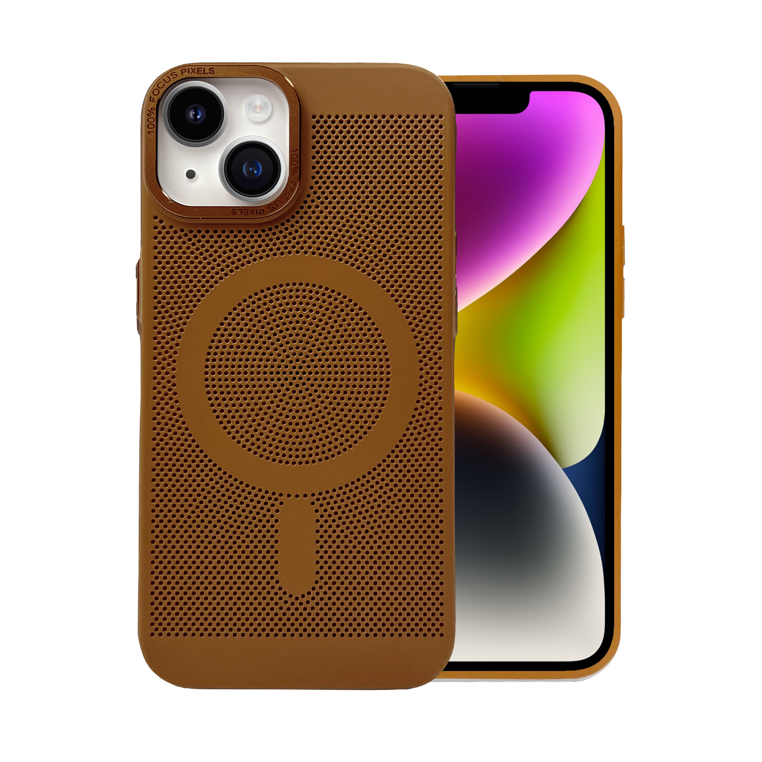 Etui do iPhone 14 Breathable Cam Ring, oddychające z Magsafe, brązowe