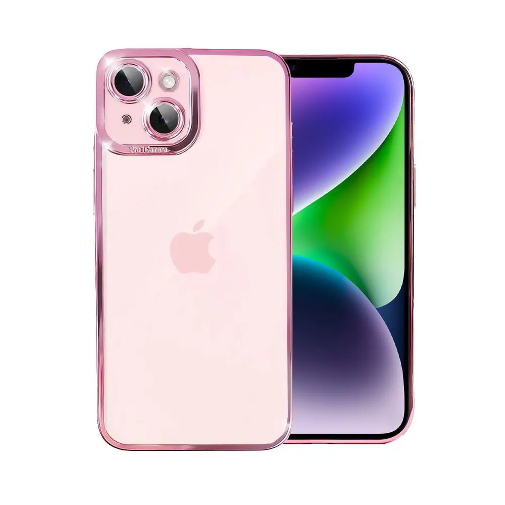 Etui do iPhone 14 Camera Beam, hybrydowa ochrona kamery, pudrowy róż