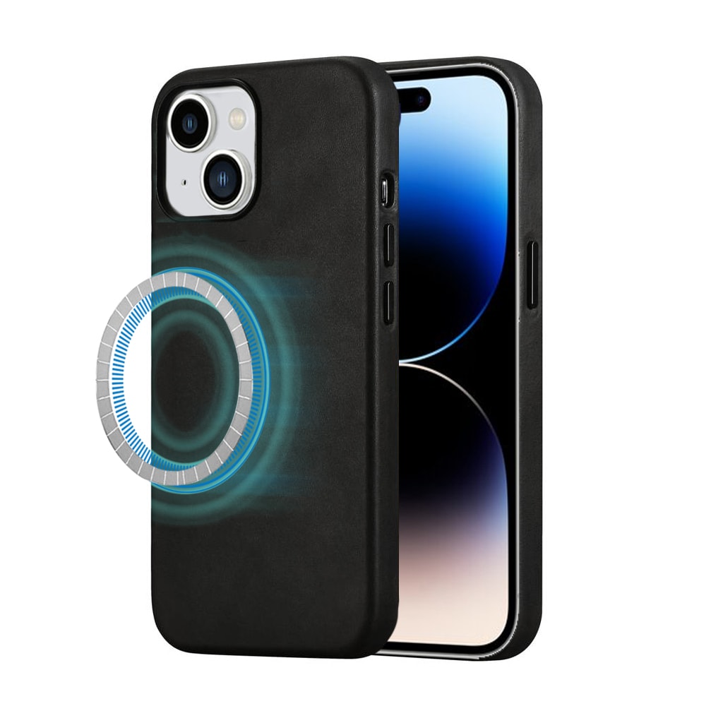 Etui do iPhone 14 biznesowe skórzane z MagSafe, eleganckie, czarne