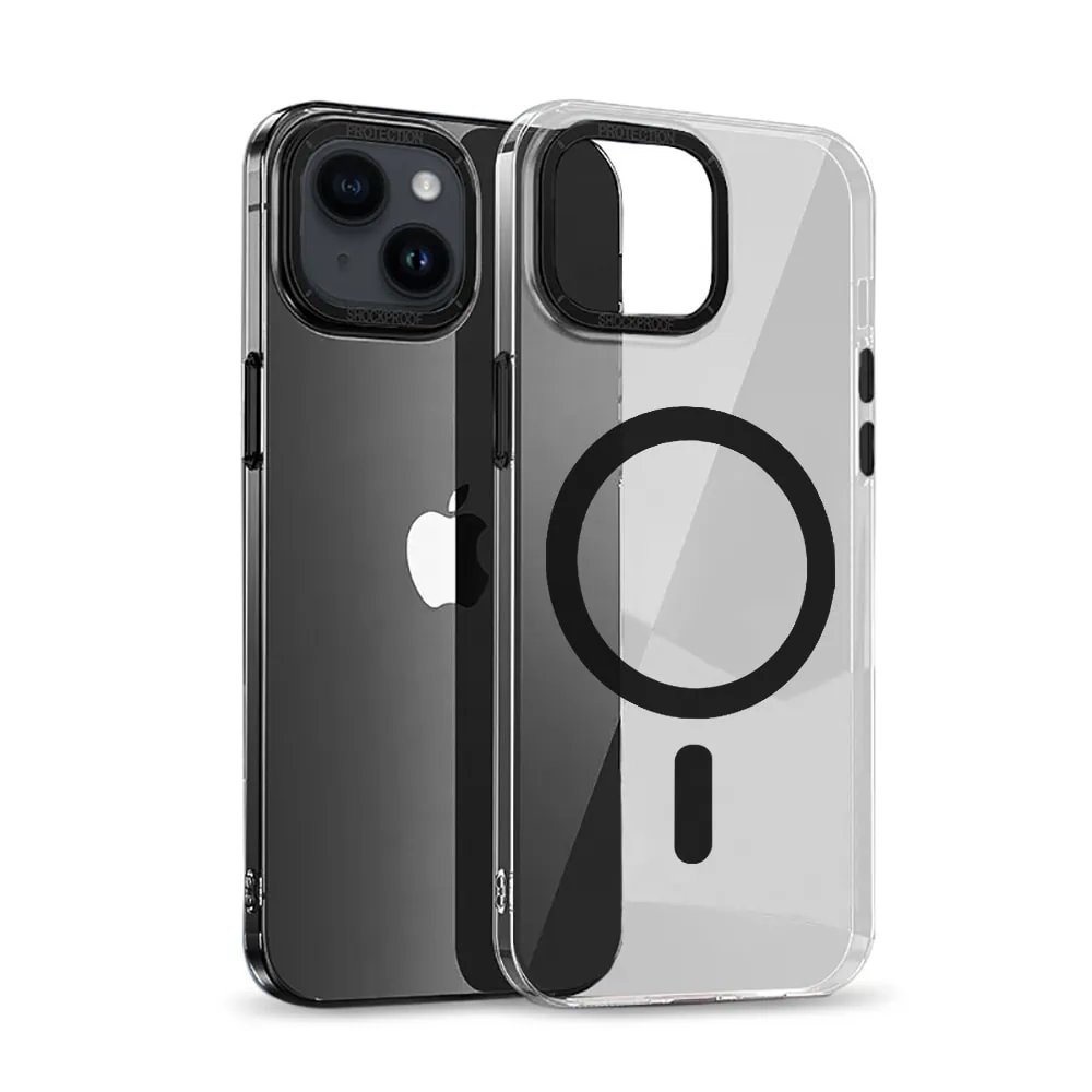 Etui do iPhone 14 Cam Ring MagSafe, twardy tył, przeźroczyste, czarne