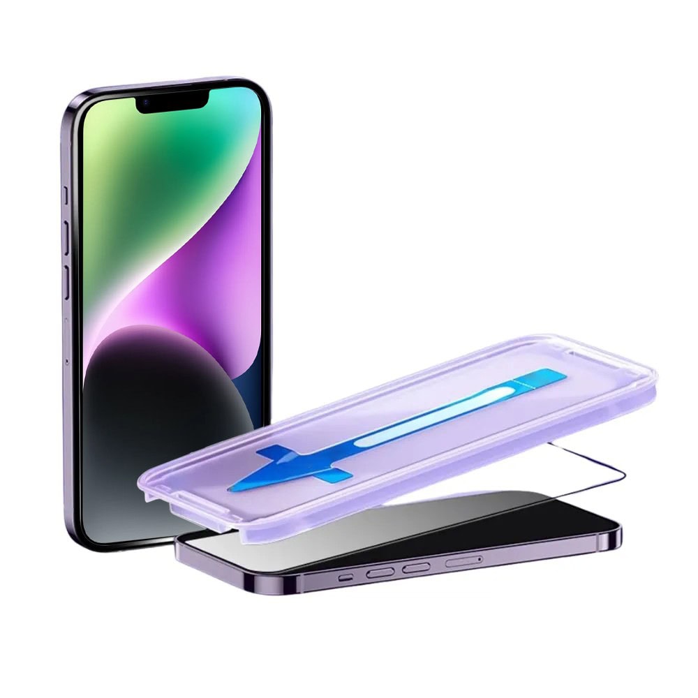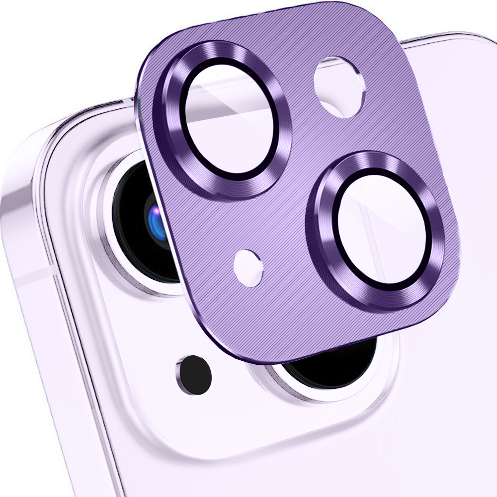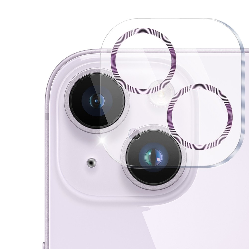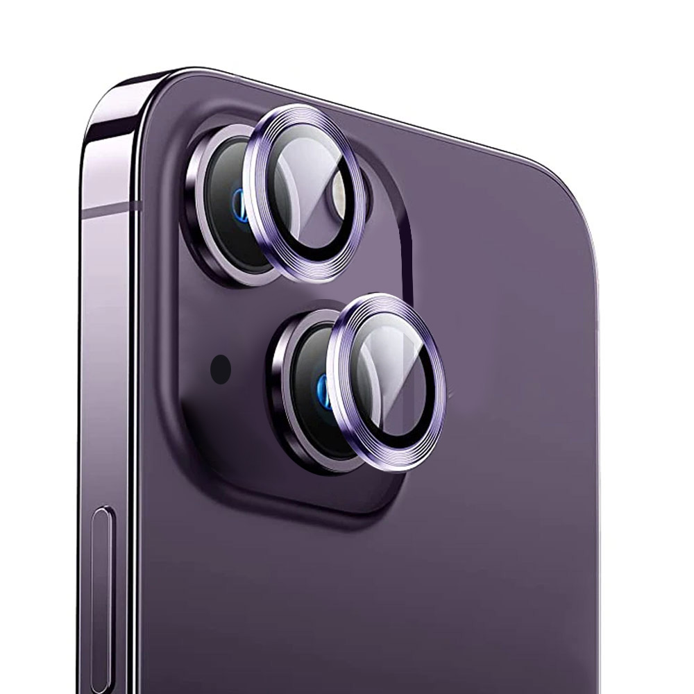 iPhone 14 pełne szkło hartowane na cały aparat z metalowymi pierścieniami, fioletowe
