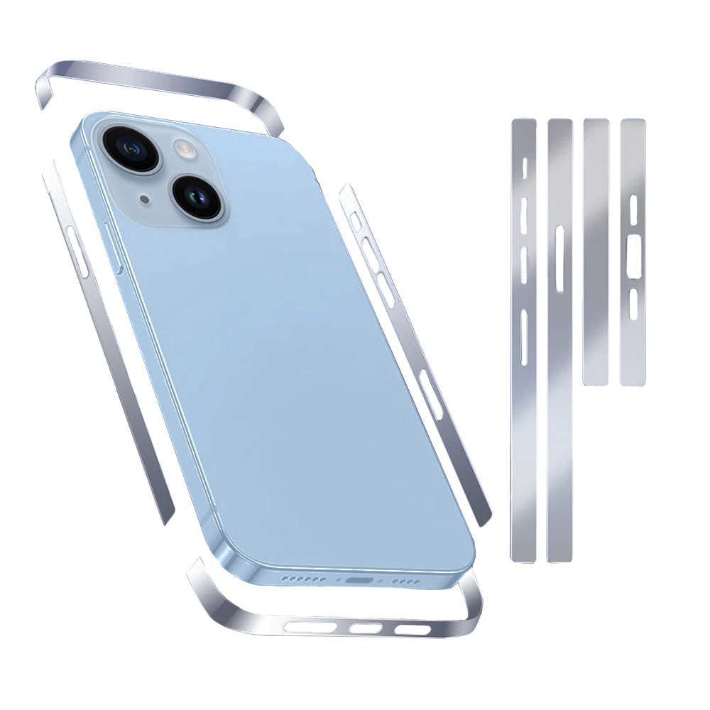 iPhone 14 gładka metalowa osłona na cały aparat, wbudowane szkła 9H, srebrna