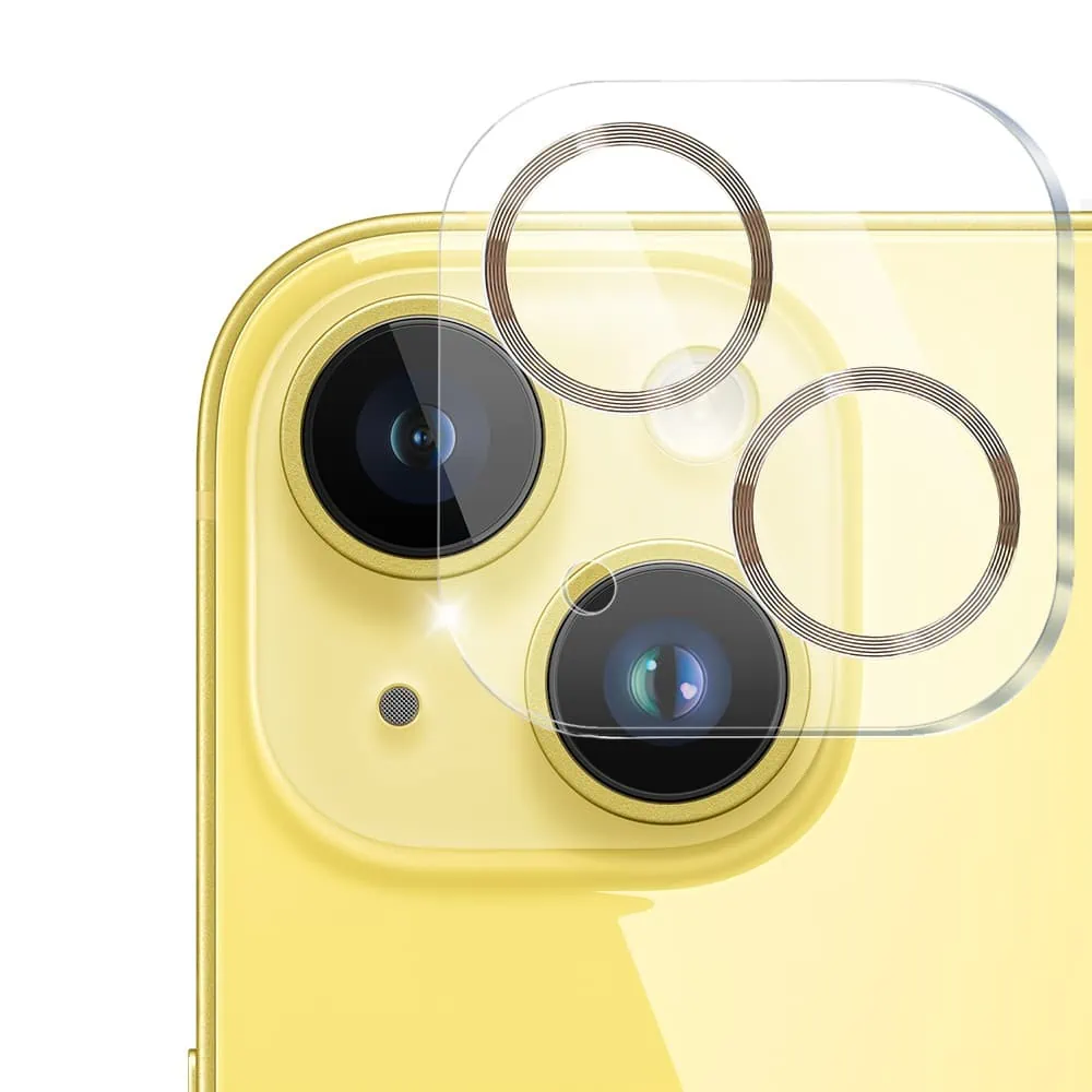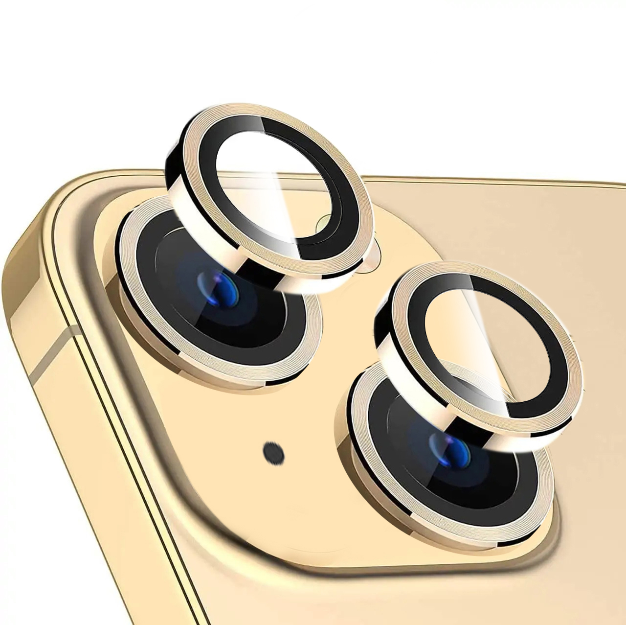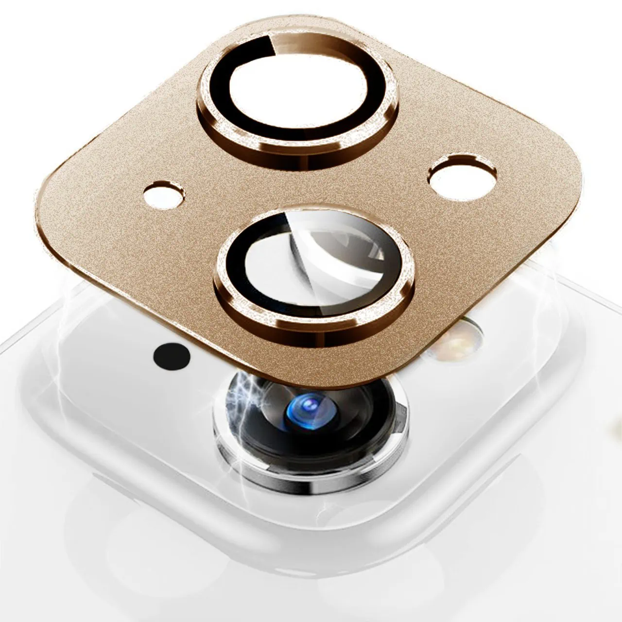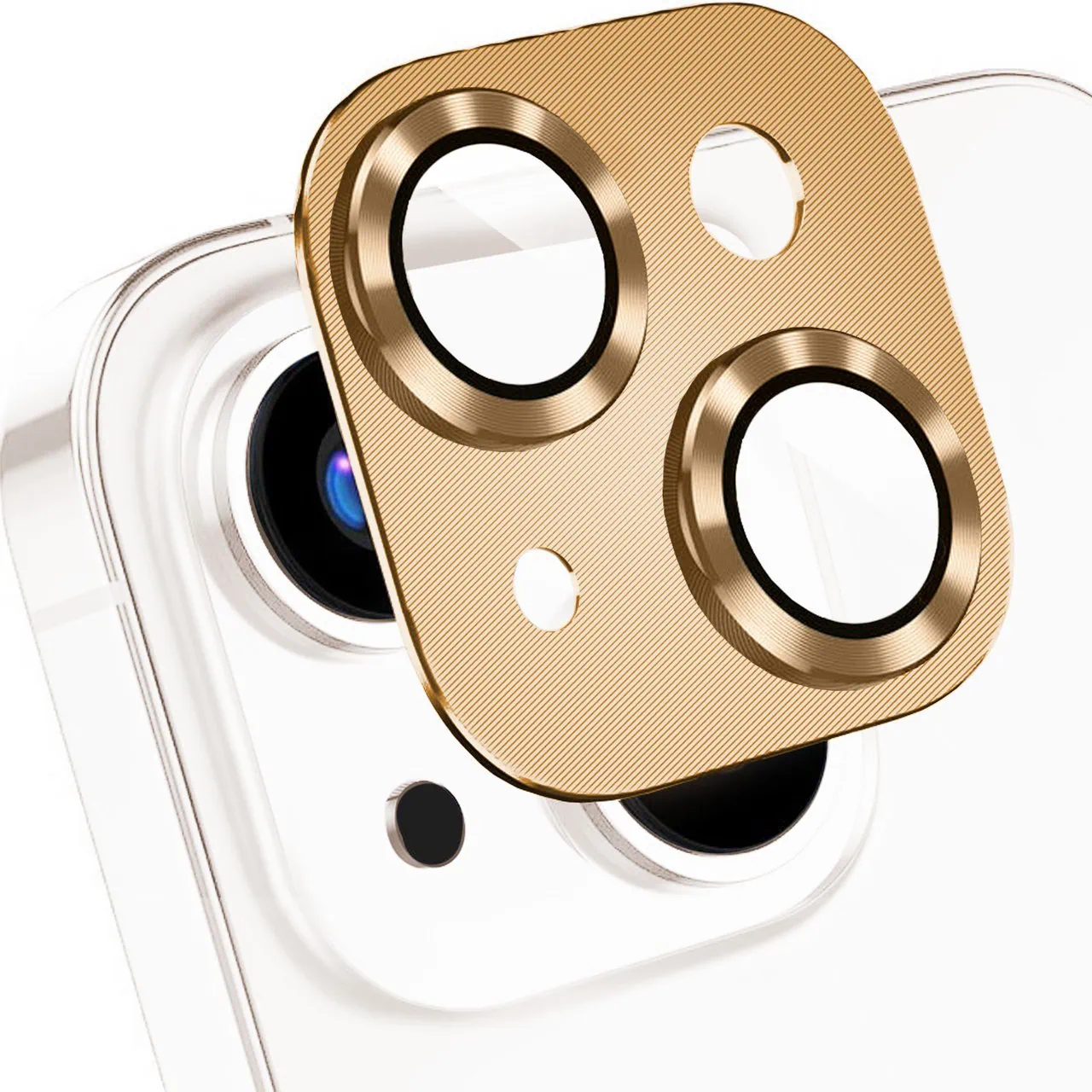 iPhone 14 gładka metalowa osłona na cały aparat, wbudowane szkła 9H, złota