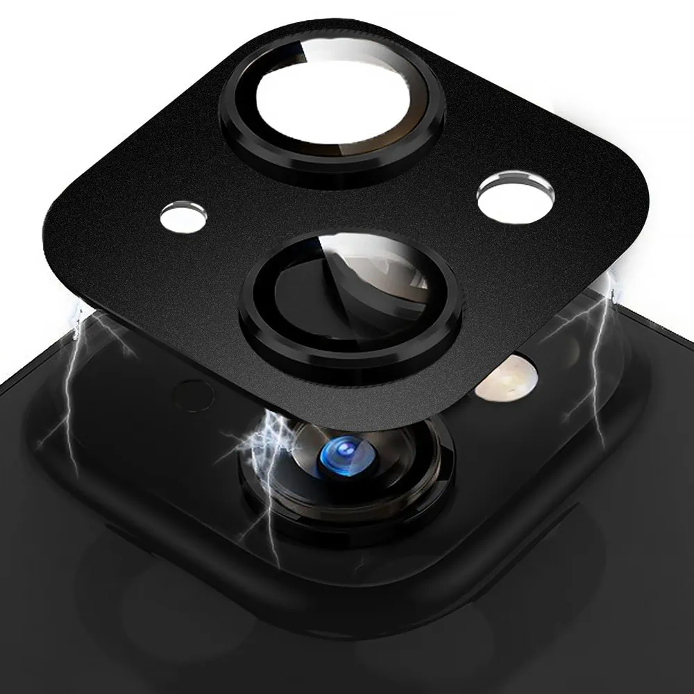 iPhone 14 gładka metalowa osłona na cały aparat, wbudowane szkła 9H, czarna