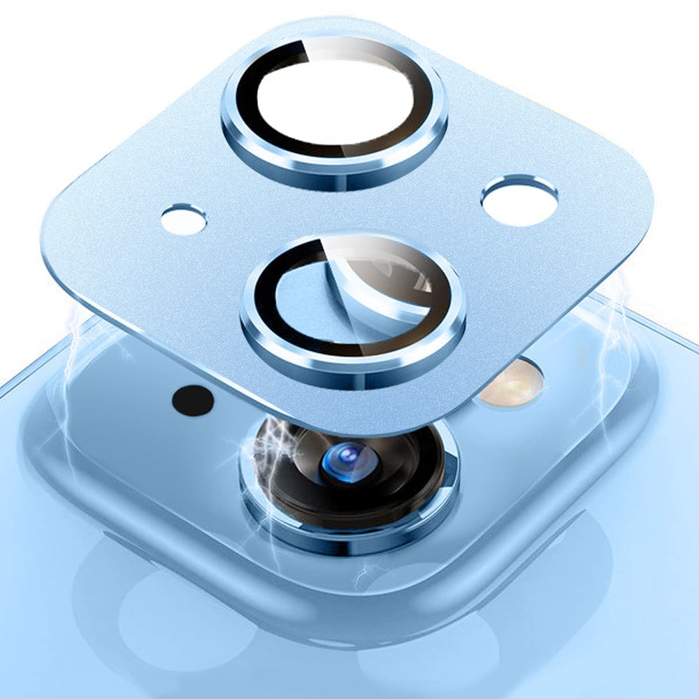 iPhone 14 gładka metalowa osłona na cały aparat, wbudowane szkła 9H, niebieska