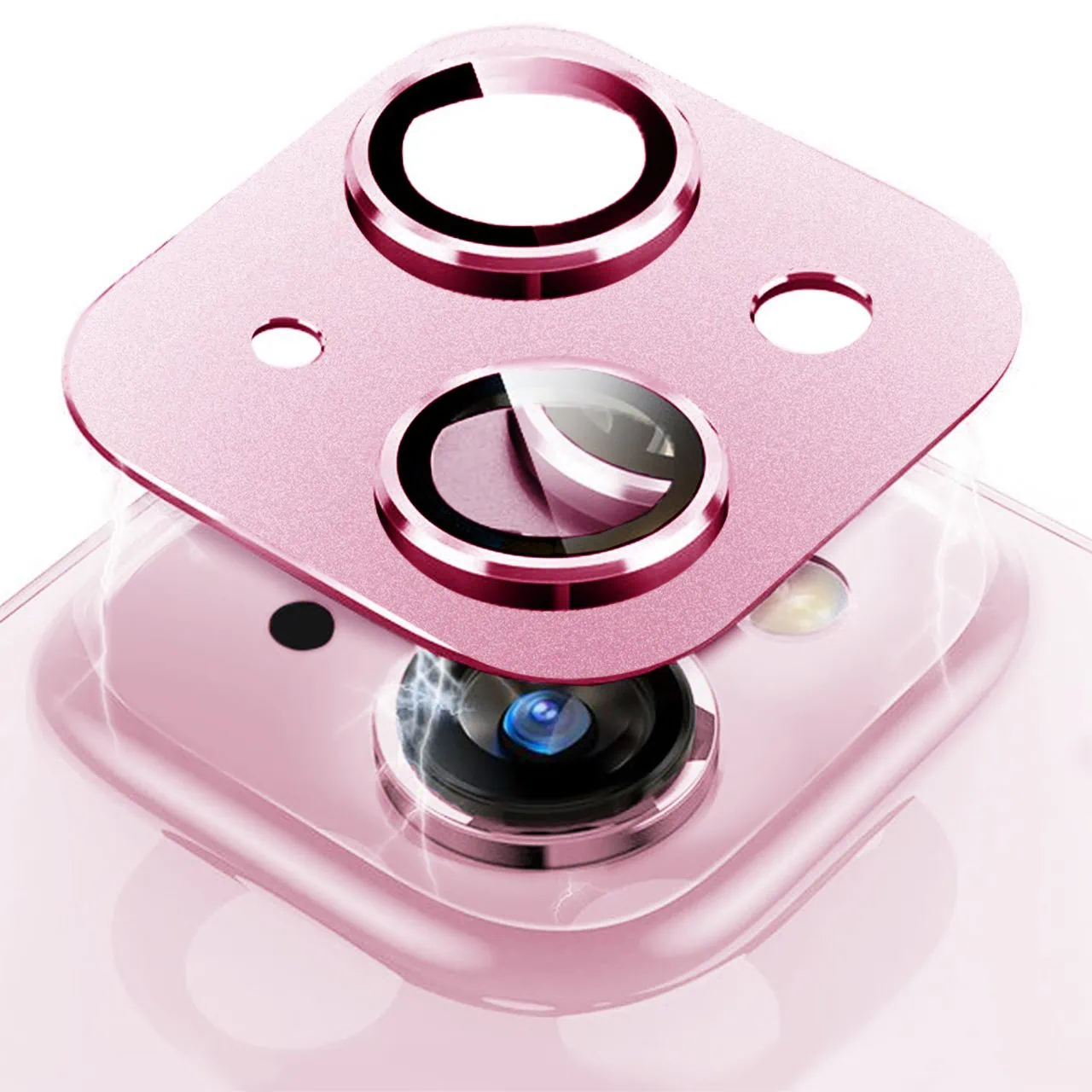iPhone 14 gładka metalowa osłona na cały aparat, wbudowane szkła 9H, różowa