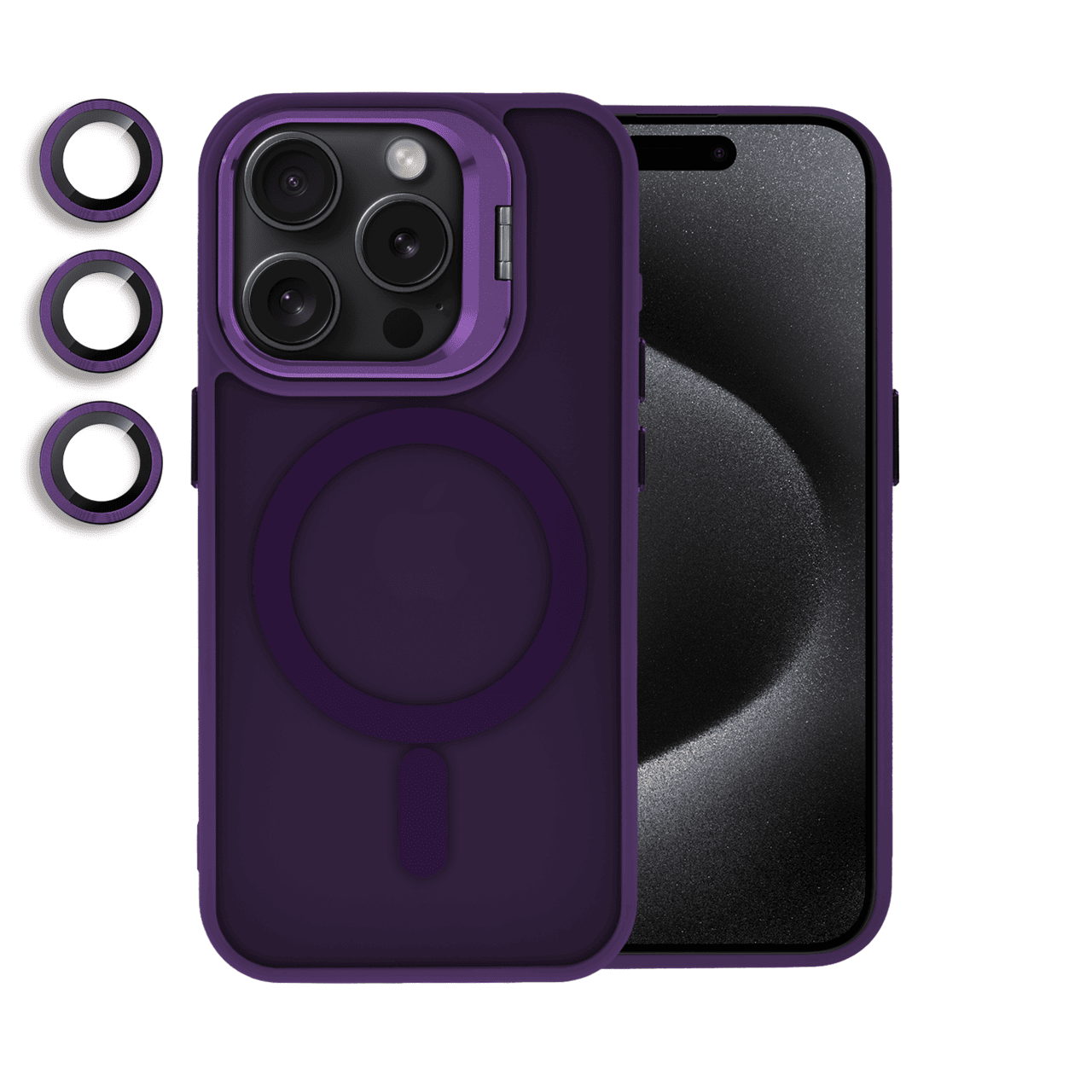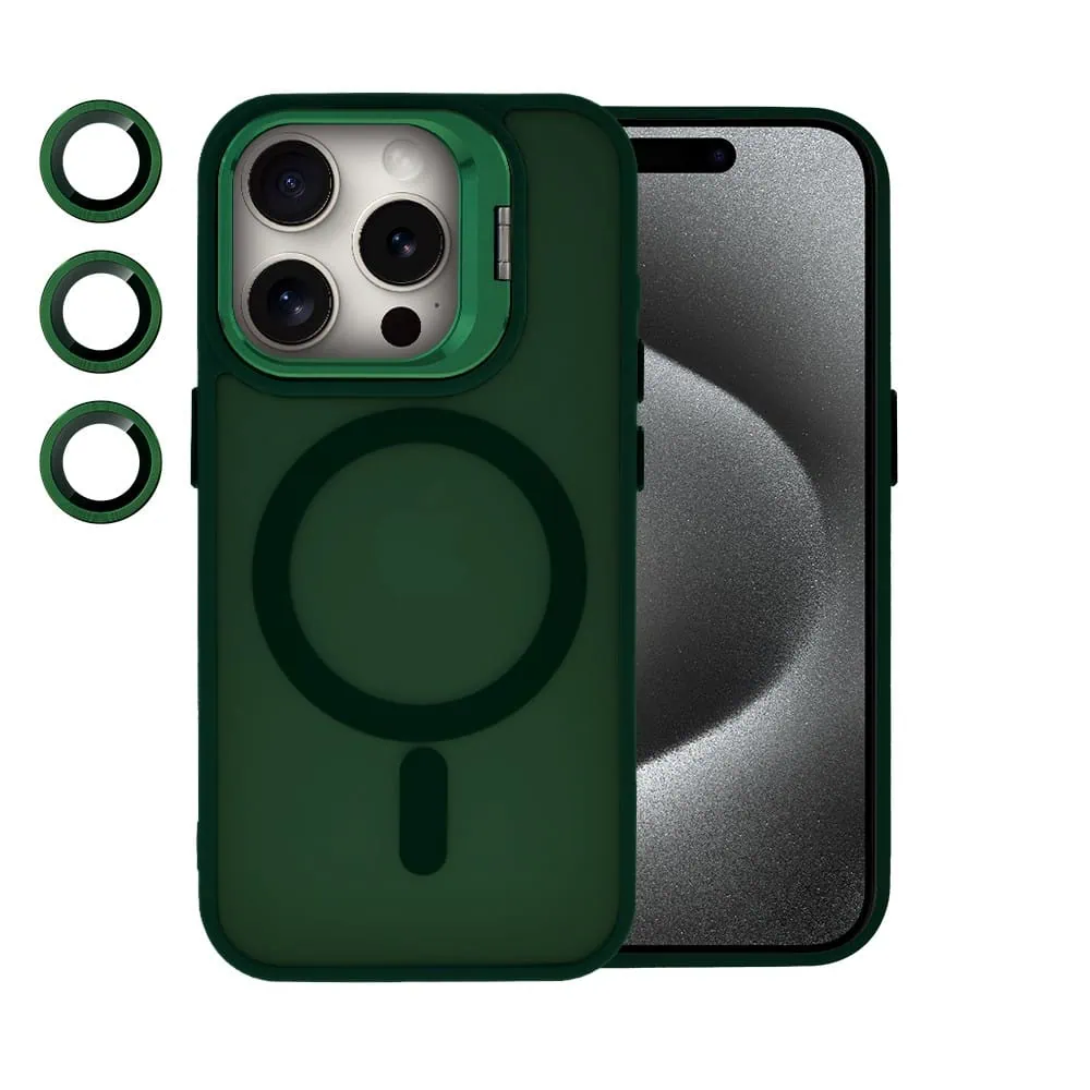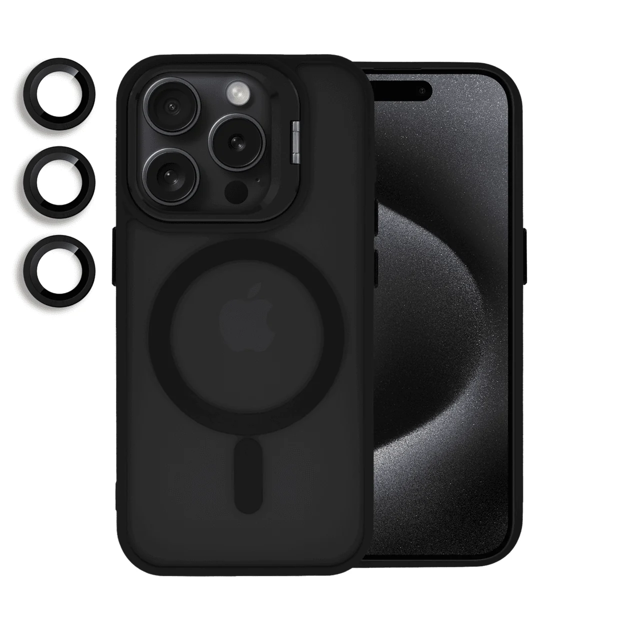 Etui do iPhone 15 Pro Max, pancerne, z osłoną aparatu i metalową podstawką MagSafe, czarne