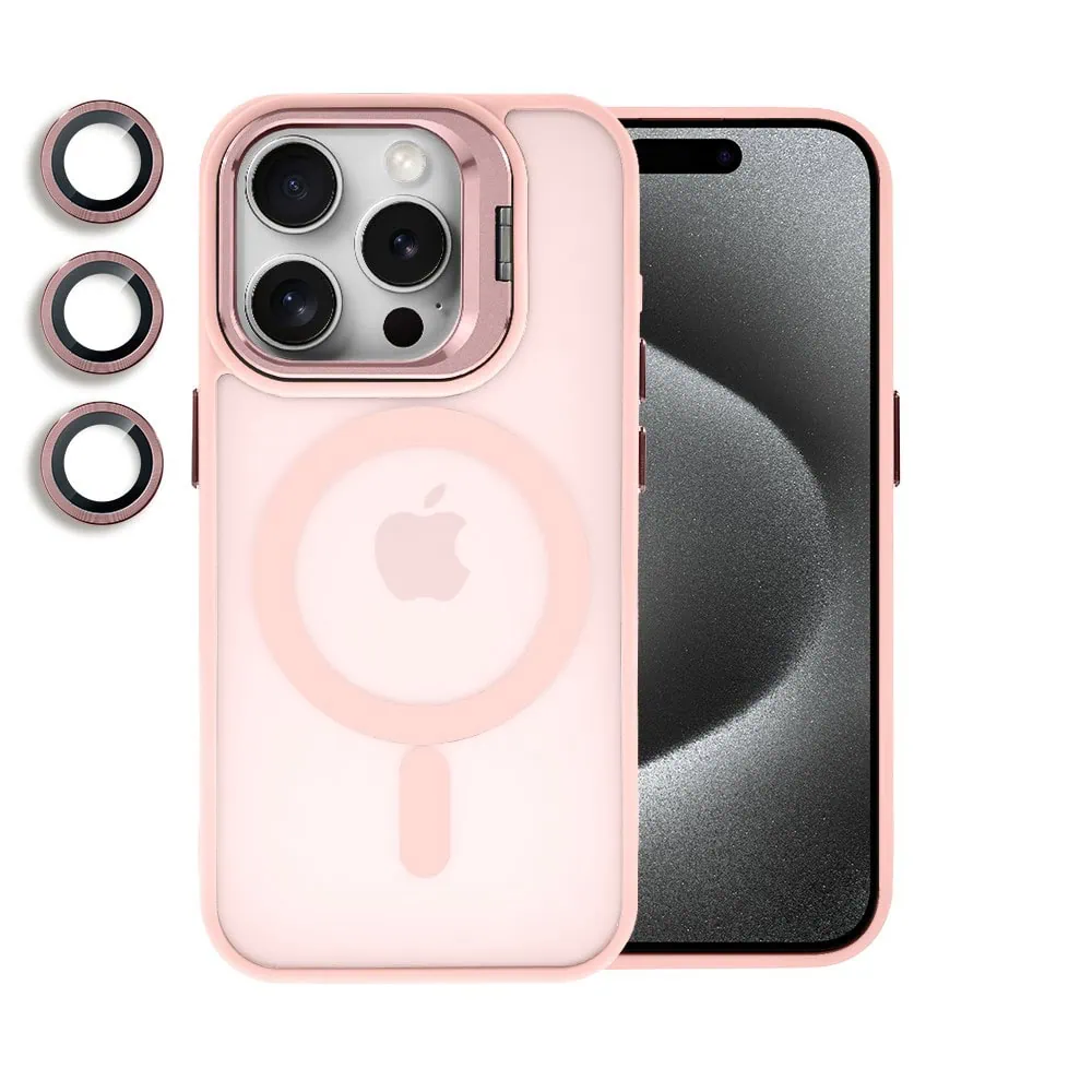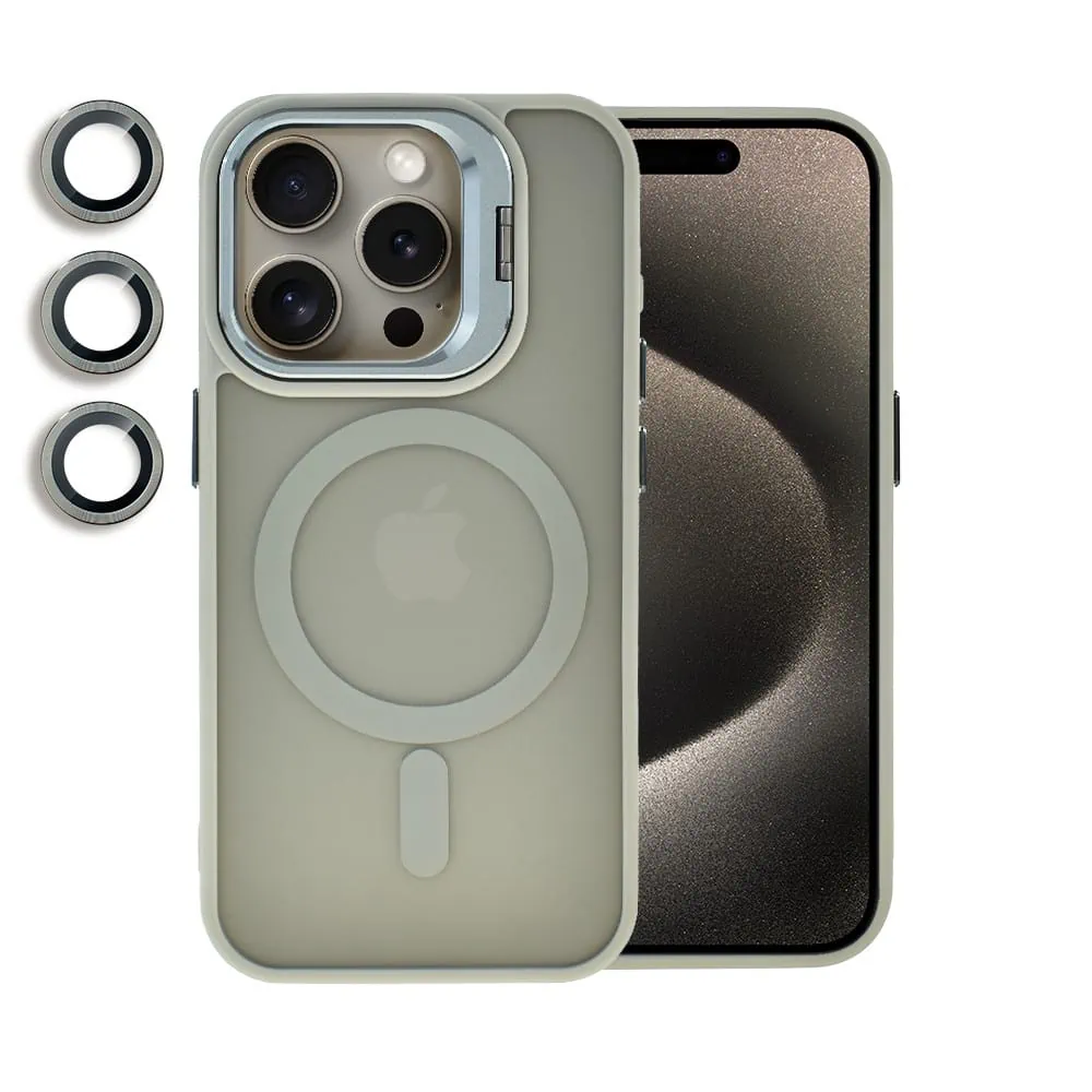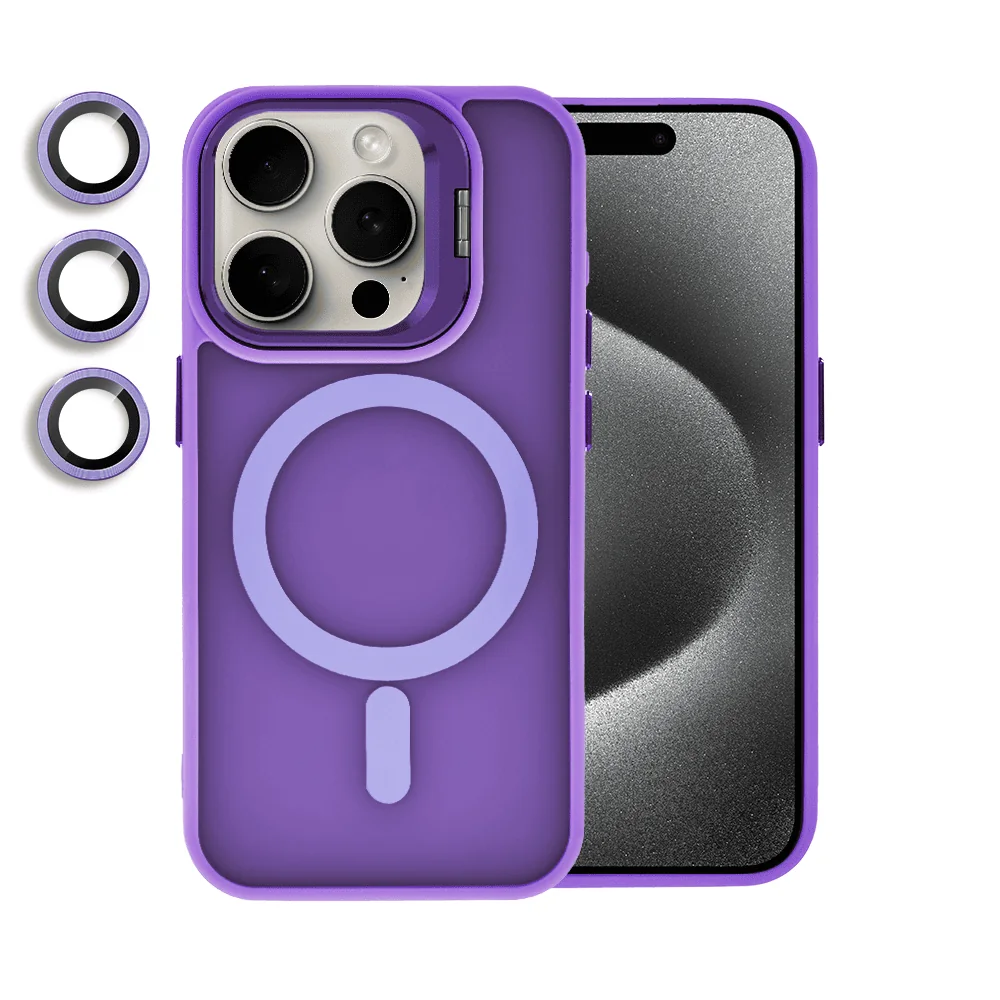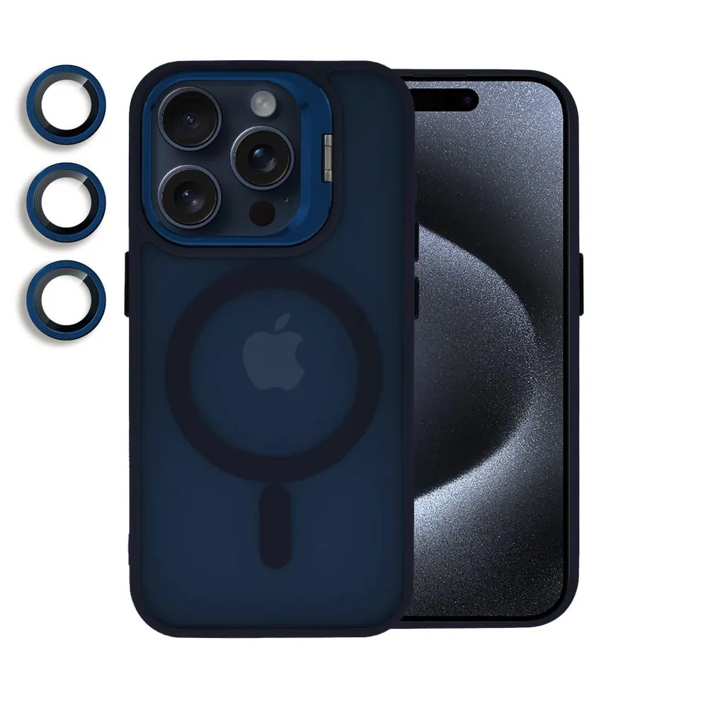 Etui do iPhone 15 Pro Max, pancerne, z osłoną aparatu i metalową podstawką MagSafe, czarne
