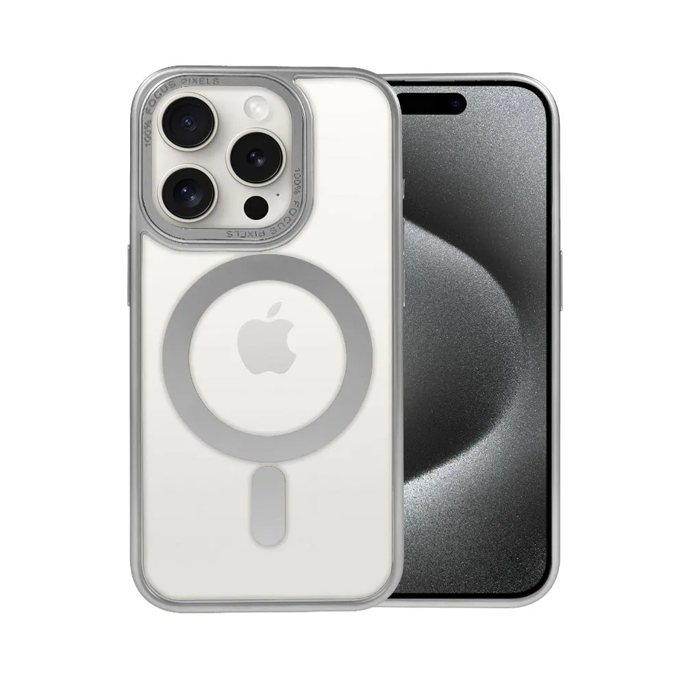 Etui do iPhone 15 Pro Max Clear Steel MagSafe, z podstawką, przeźroczysty tył, czarna ramka