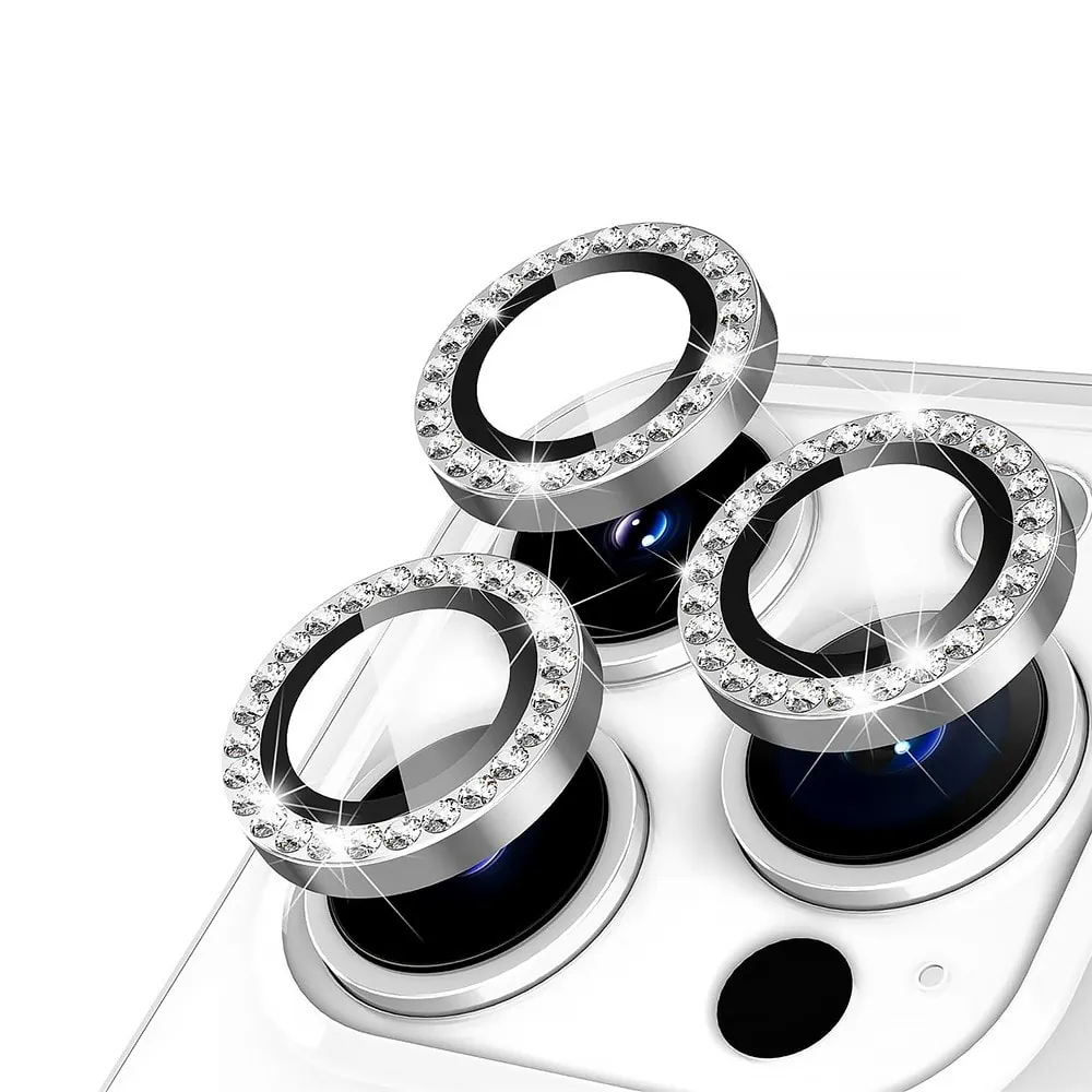 Luksusowa diamentowa osłona obiektywów, szkło na aparat iPhone 15 Pro, srebrna