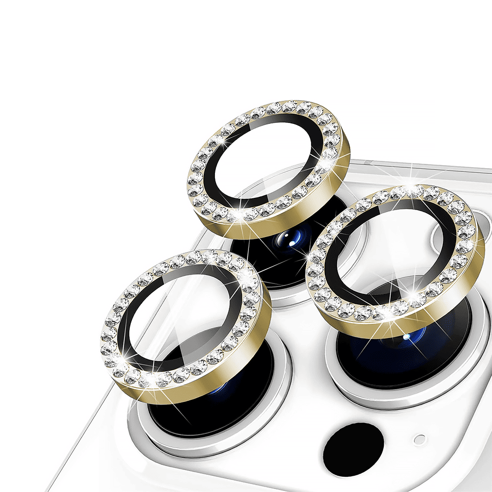 Luksusowa diamentowa osłona obiektywów, szkło na aparat iPhone 15 Pro, złota