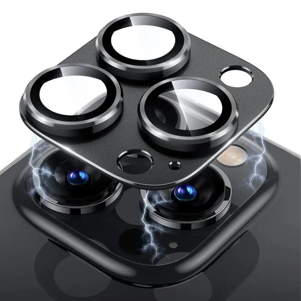 iPhone 15 Pro gładka metalowa osłona na cały aparat, wbudowane szkła 9H, głęboka czerń, czarna