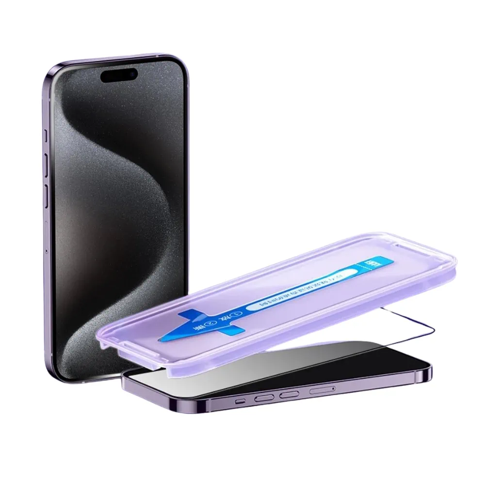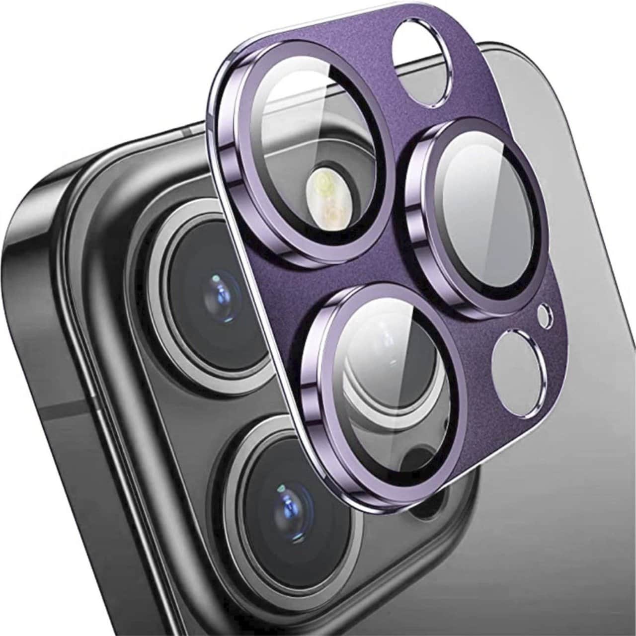 iPhone 15 Pro gładka metalowa osłona na cały aparat, wbudowane szkła 9H, purpurowa, fioletowa