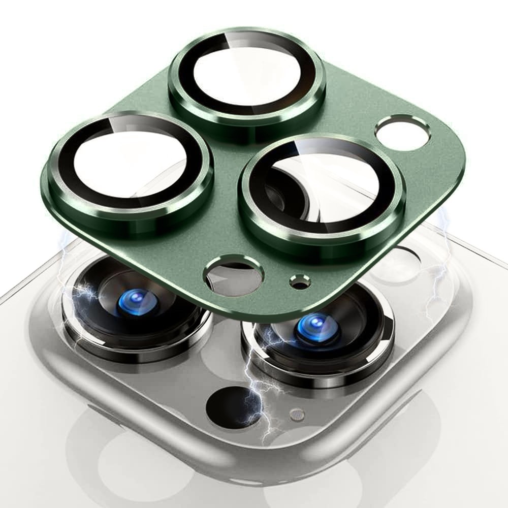 iPhone 15 Pro gładka metalowa osłona na cały aparat, wbudowane szkła 9H, zielona