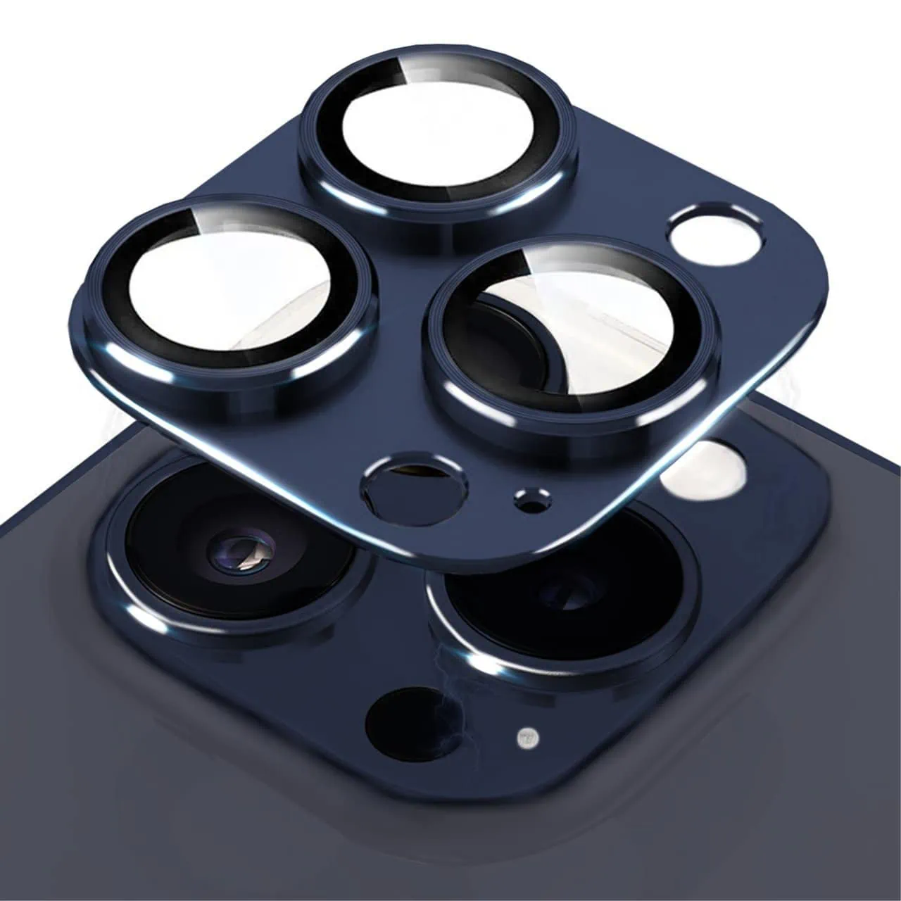 iPhone 15 Pro gładka metalowa osłona na cały aparat, wbudowane szkła 9H, tytan błękitny