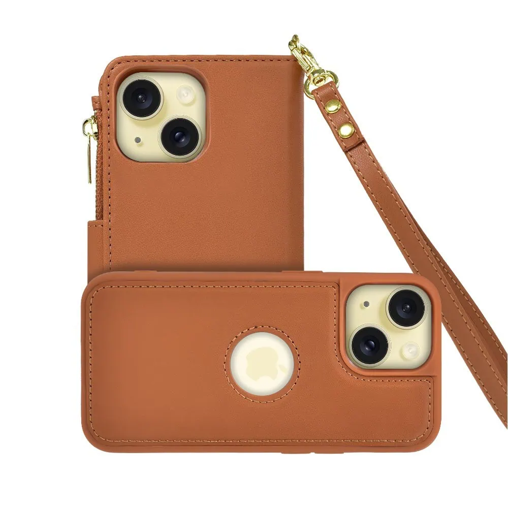 Etui do iPhone 15 2w1 Magsafe Double Wallet, zestaw etui oraz kabura ze smyczą, brązowe