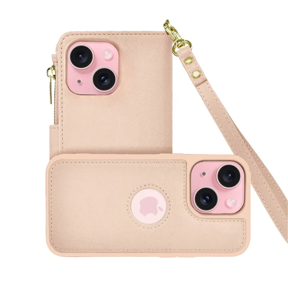 Etui do iPhone 15 2w1 Magsafe Double Wallet, zestaw etui oraz kabura ze smyczą, różowe