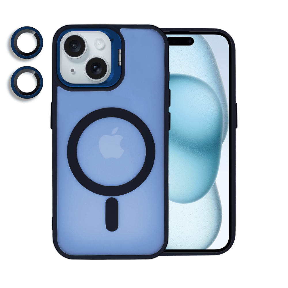 Etui do iPhone 15 Arctic Stand, półprzeźroczyste, z osłoną aparatu i podstawką, głęboki niebieski