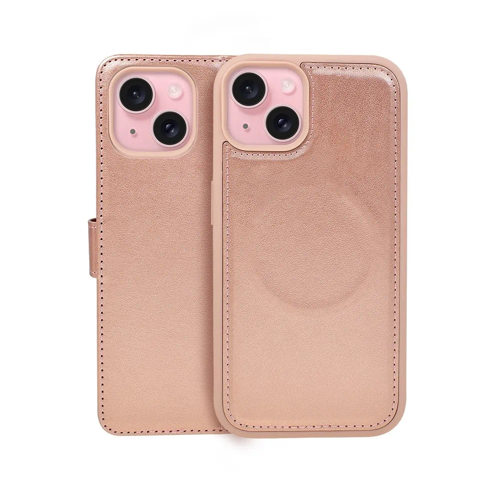 Etui do iPhone 15 3w1 Magsafe Double Book, zestaw etui oraz kabura z podstawką, różowe złoto