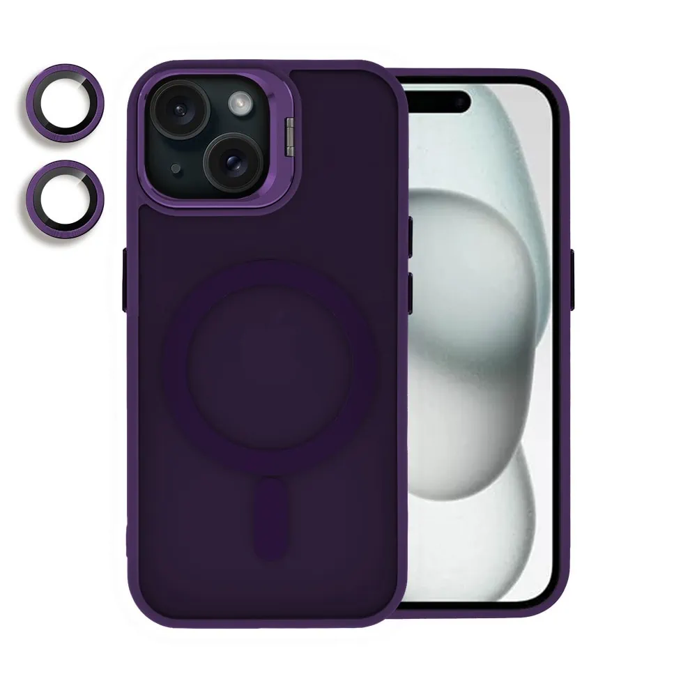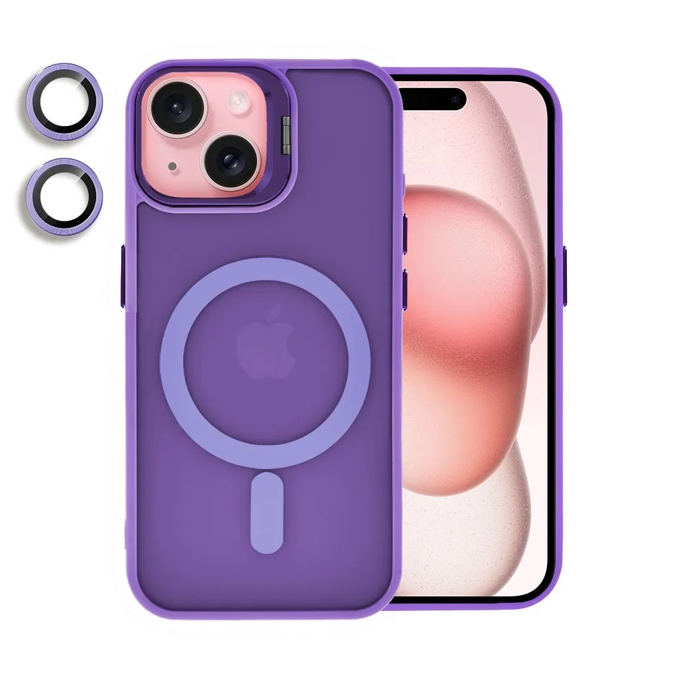 Etui do iPhone 15 Arctic Stand, półprzeźroczyste, z osłoną aparatu i podstawką, głęboka purpura