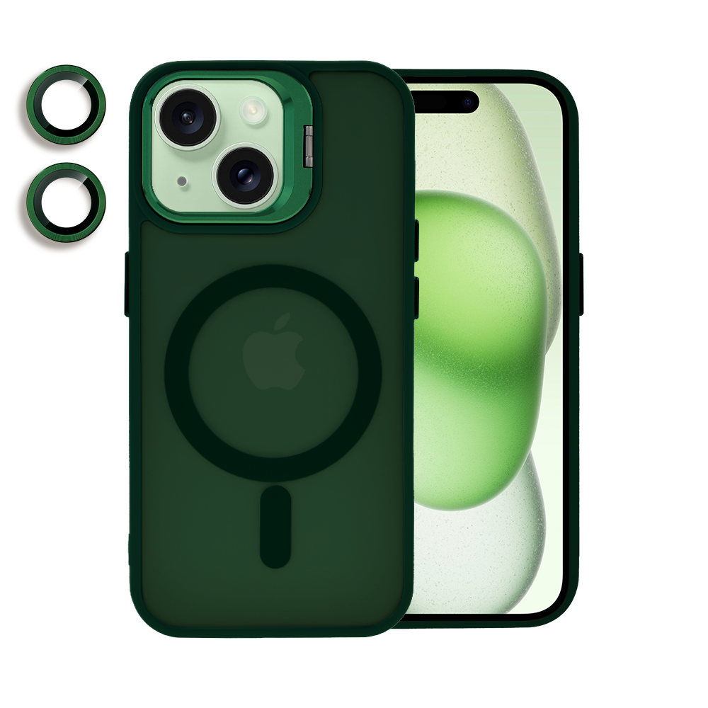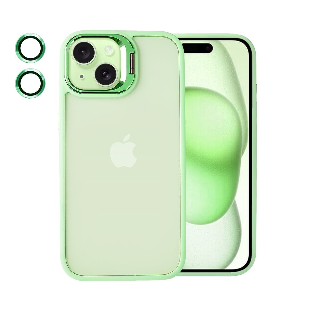 Etui do iPhone 15 Arctic Stand, półprzeźroczyste, z osłoną aparatu i podstawką, zielone