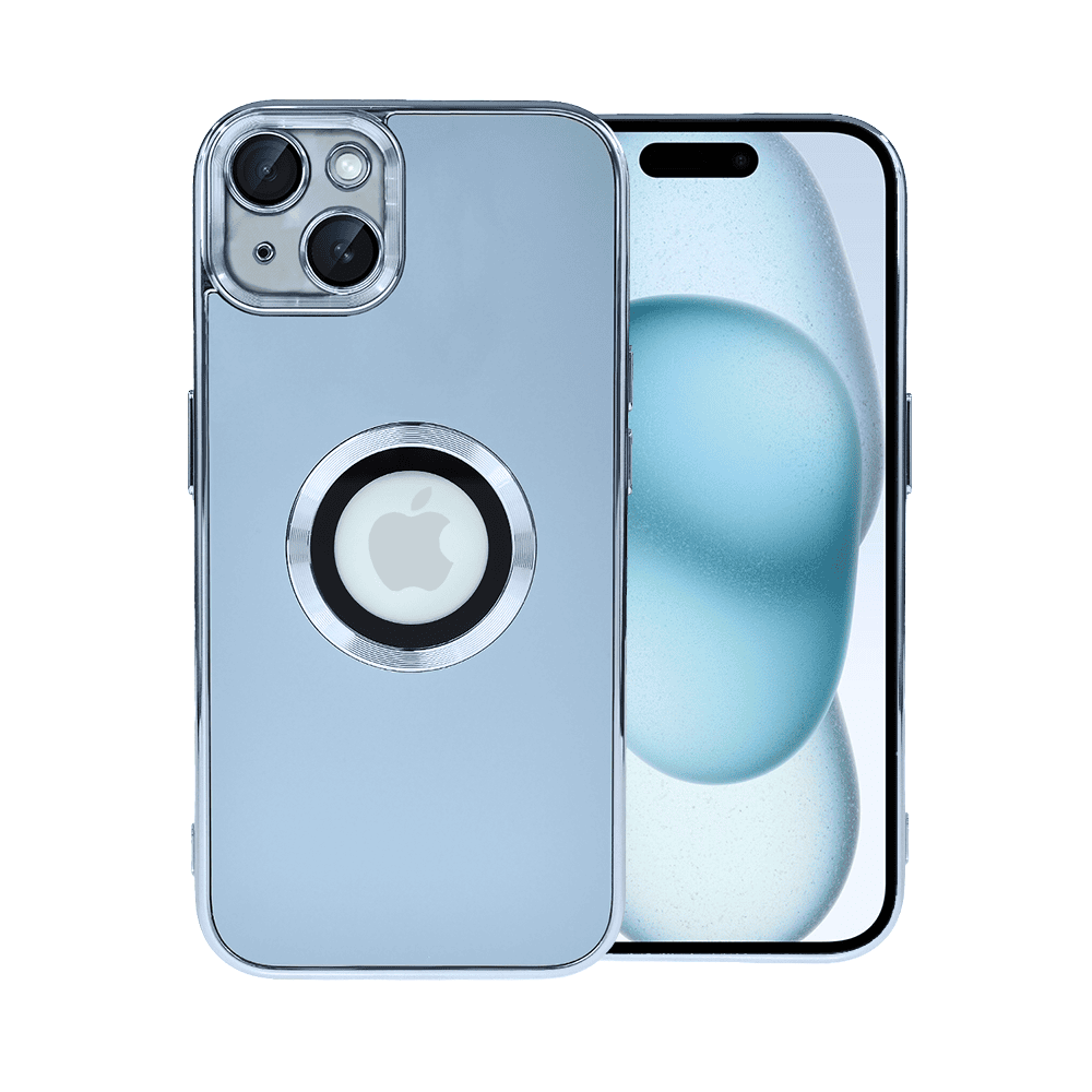 Etui do iPhone 15 cienkie, eleganckie, z osłoną aparatu i widocznym logo, niebieskie