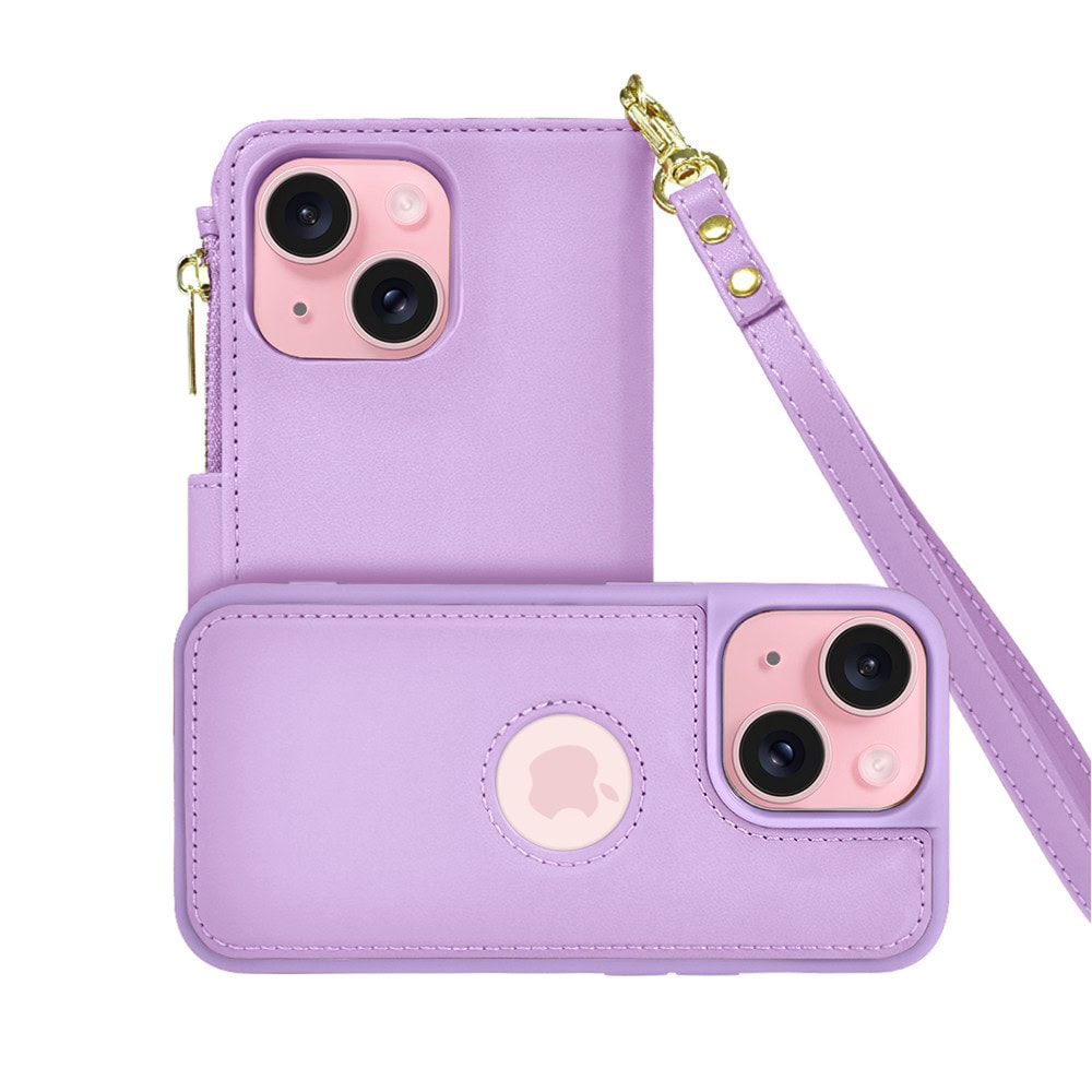 Etui do iPhone 15 2w1 Magsafe Double Wallet, zestaw etui oraz kabura ze smyczą, fioletowe