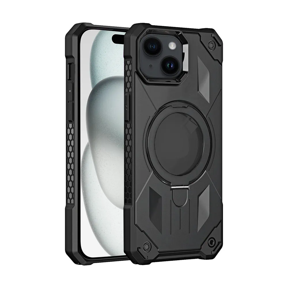 Etui do iPhone 15 Armored Metal Cam MagSafe Stand z podstawką, czarne